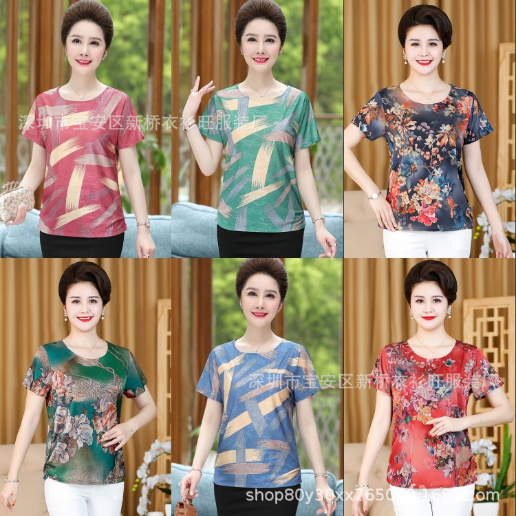 | nameOriginal | Rural night market stall new supply Summer middle-aged and elderly cheap mother short sleeve T-shirt 1688 wholesale |