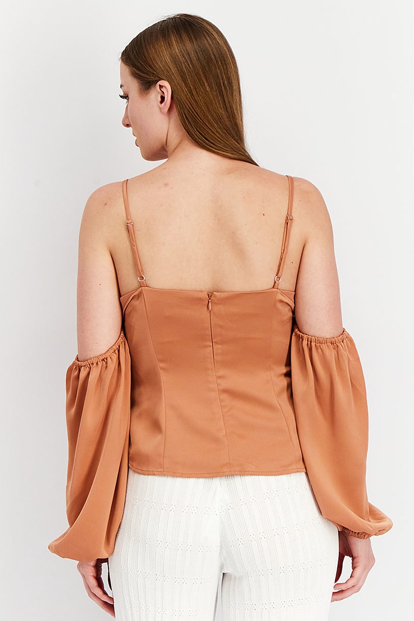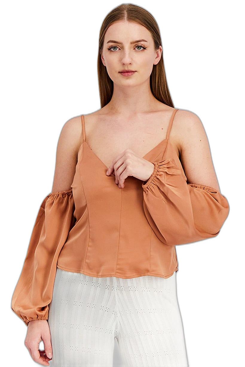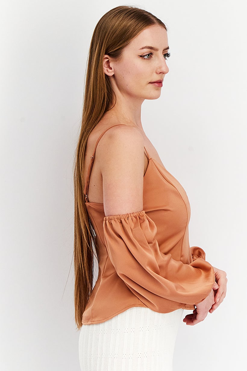 | nameOriginal | Women V Neck Cold Shoulder Satin Tops, Rust |