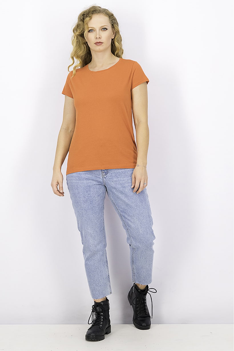| nameOriginal | Women Plain Short Sleeve Round Neck Top, Rust |