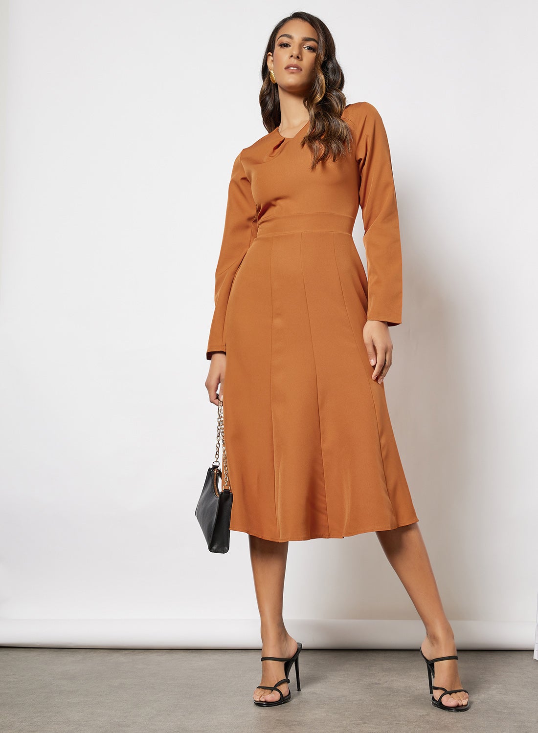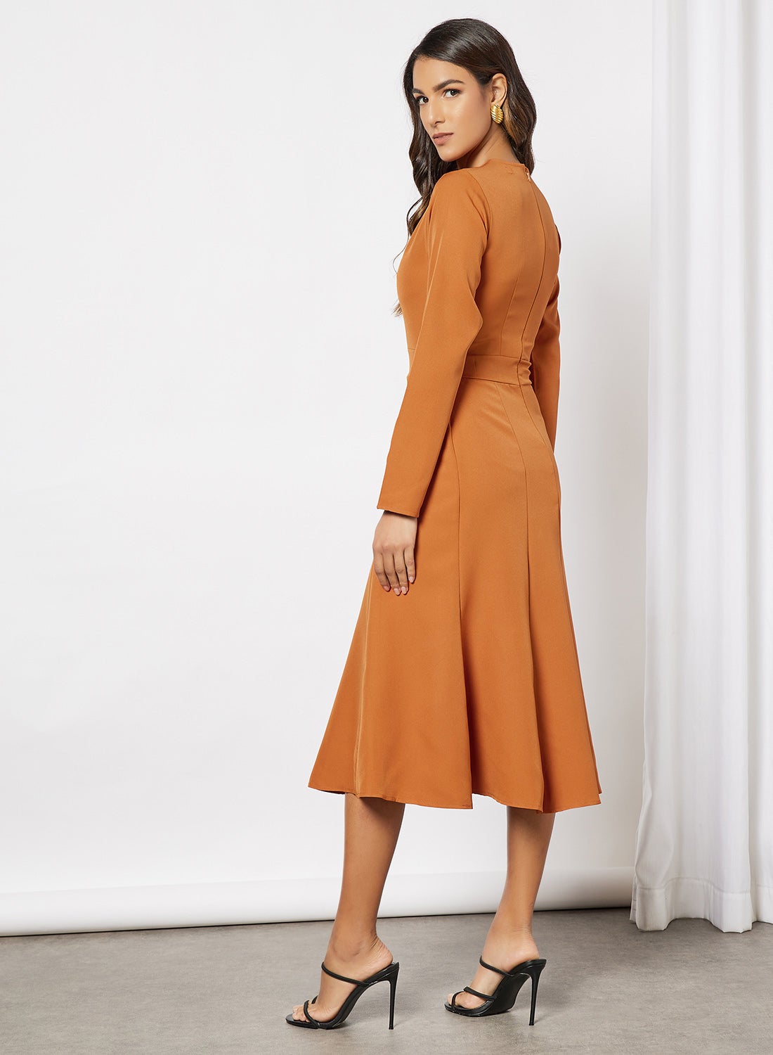| nameOriginal | V-Neck Flounce Hem Official Lady Sharp Dress Rust |
