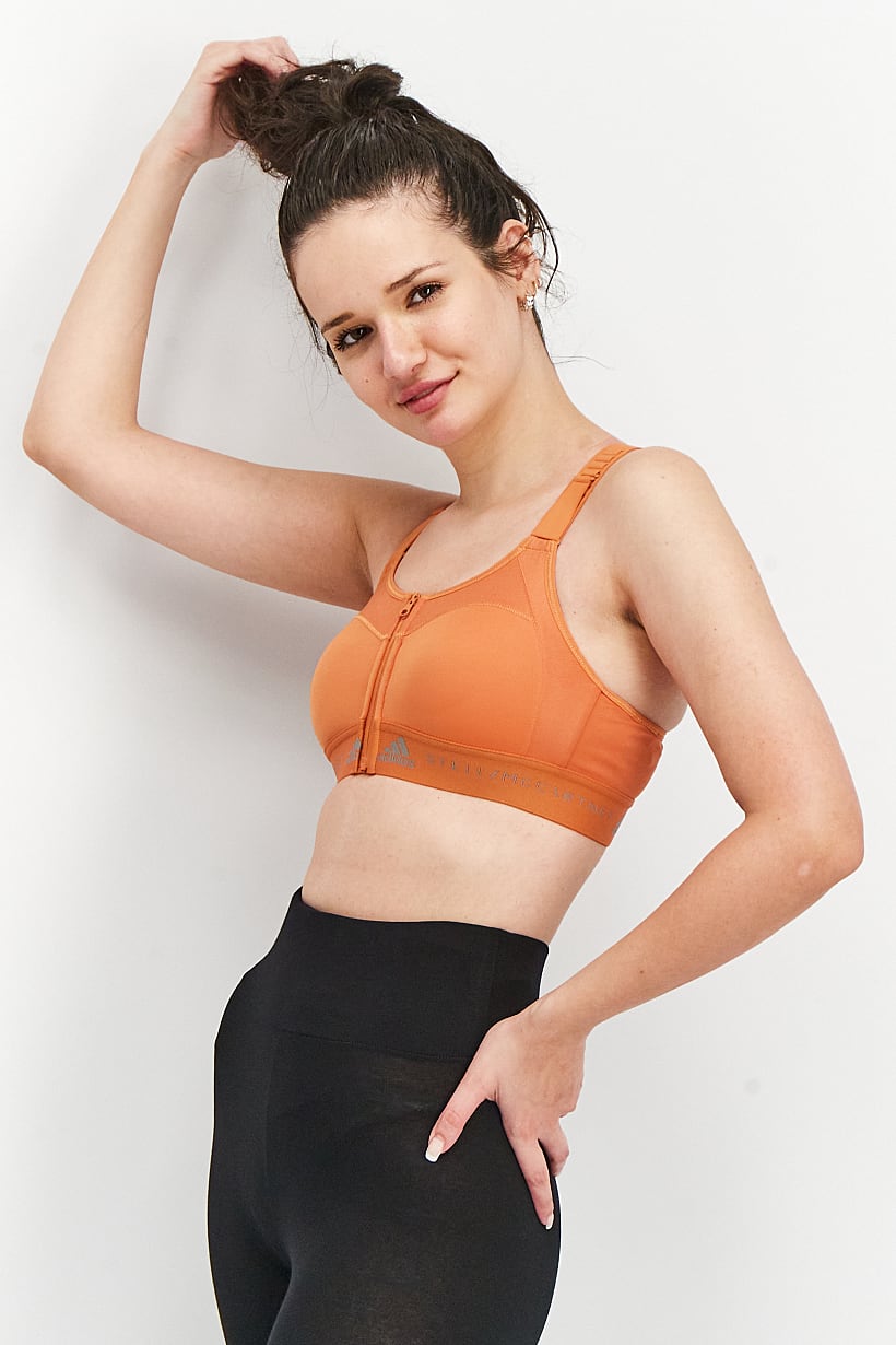 Care : Hand wash, Fit : Sportswear Fit, Size shown : US, Thickness : Light, Type of Sport : Training, Disclaimer : Product color may slightly vary due to photographic lighting sources or your monitor settings., Fabrics : 91% Polyester, 9% Elastane, Occasion : Sport, Pattern & Print : Brand Logo, Sportswear Type : Sports Bra, Types of Closures : Zipper closure, Color Family : Brown,