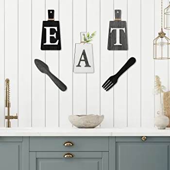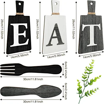 Hanging these signs is a breeze, as each one comes with a pre-installed hook on the back. You can arrange the letters to fit your wall space, whether vertically or horizontally. Made of high-quality wood, this set includes three cutting board eat signs and two fork spoon wall decors.