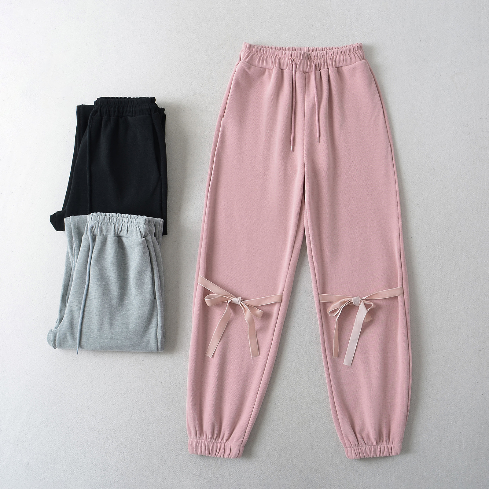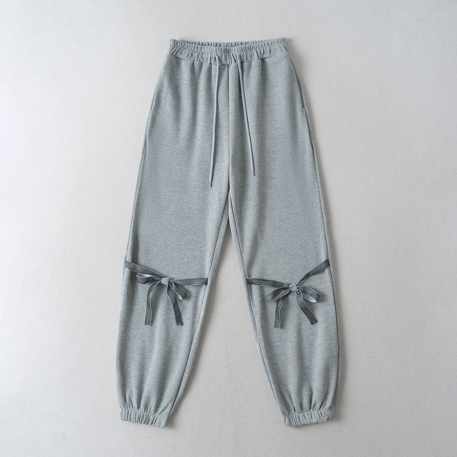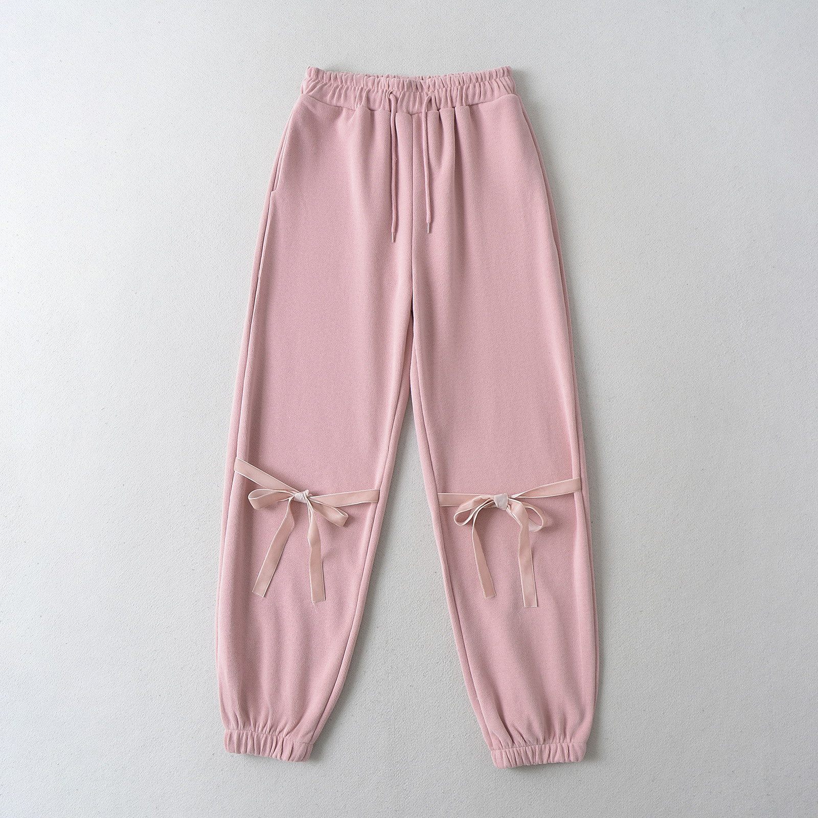 RY2419-24 spring new American drawstring elastic waist knee butterfly end foot casual sports sweatpants