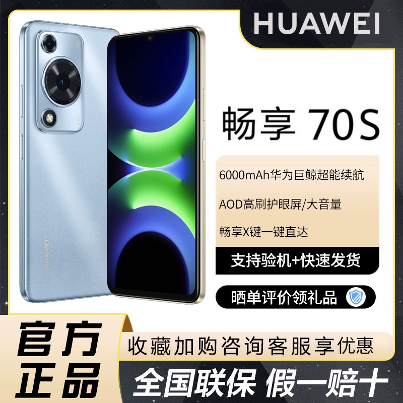 [S.F. Express] Huawei Enjoy 70S, a new all-network mobile phone with AOD eye protection and large screen, enjoy X key common functions directly to the flagship Hongmeng direct-screen smartphone in one step