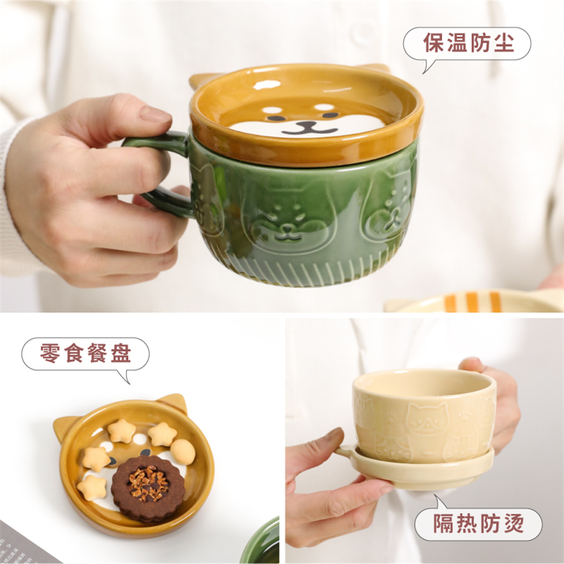 | nameOriginal | S228 Japanese Chai Dog Mug with Lid Water Cup Household Coffee Cup Breakfast Cup Couple Niche Design Sense Ceramic |