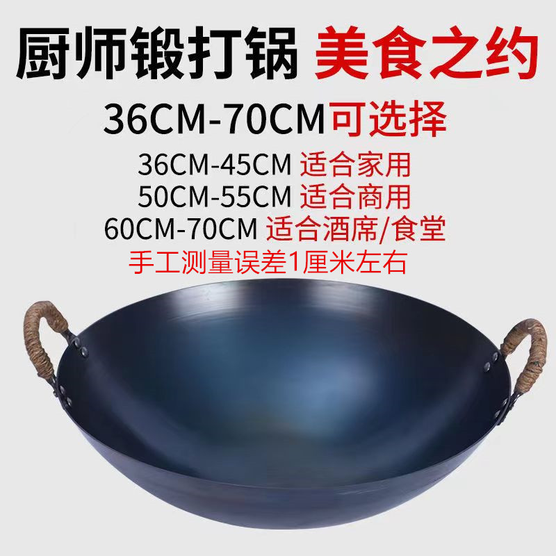S588 Chef Pot Double Ear Pot Commercial Wok Large Iron Pot Traditional Wok Uncoated Non-stick Pot Chai Hot Pot Floor Pot