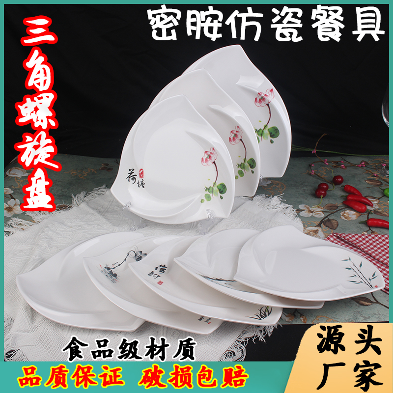 | nameOriginal | S588 melamine imitation porcelain tableware triangular plate spiral plate plastic dish cold dish hot dish plate wrapping table platter hot pot |