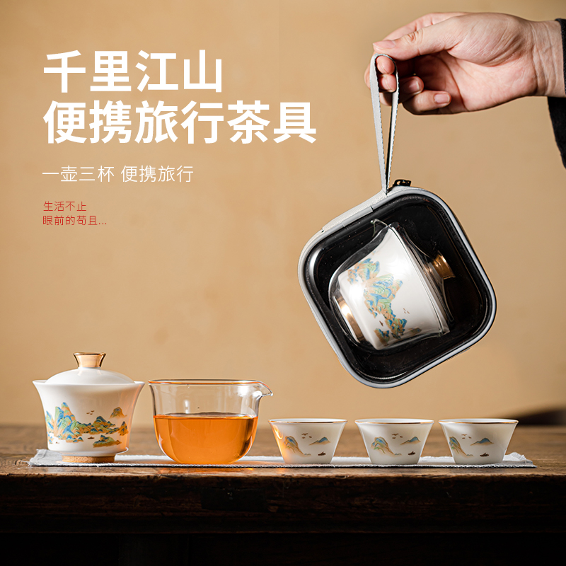 | nameOriginal | S588 Travel Tea Set suit Outdoor Portable Suet Jade Porcelain Anti-scalding Tea Quick Cup |