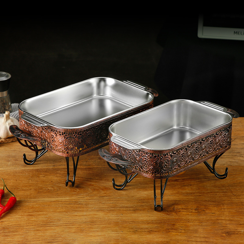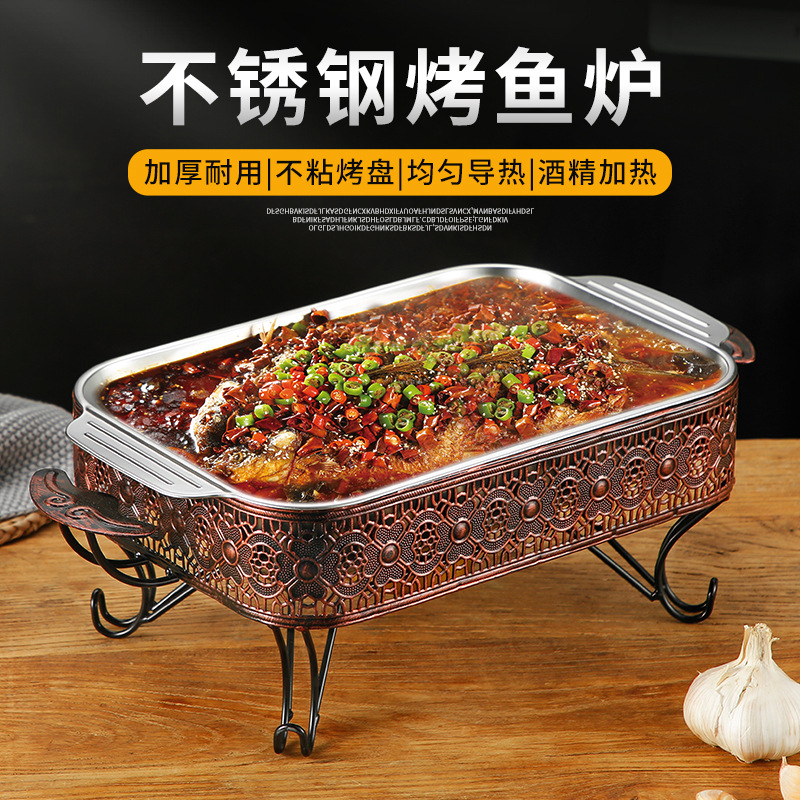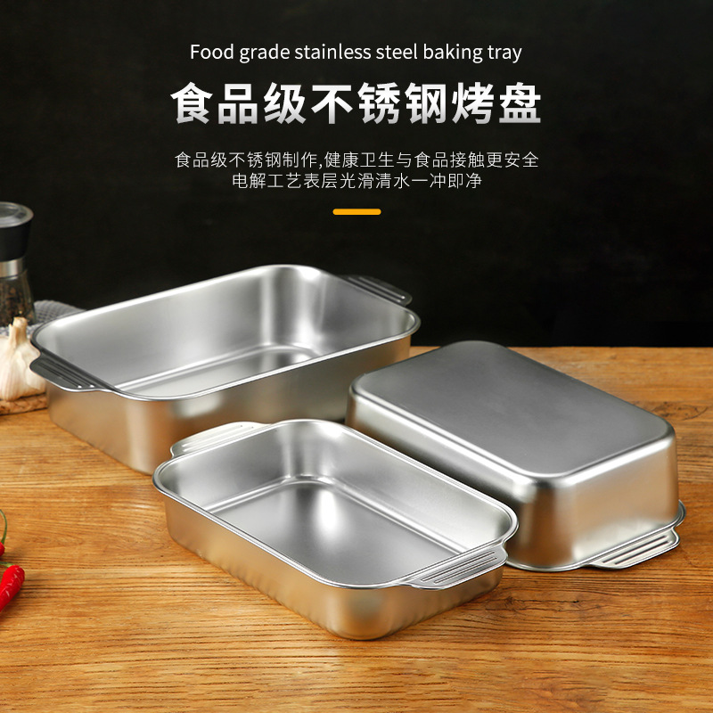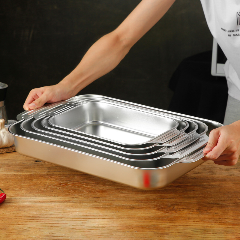 S588304 stainless steel flat square plate rectangular tray flat ear grilled fish plate special plate for induction cooker seafood large