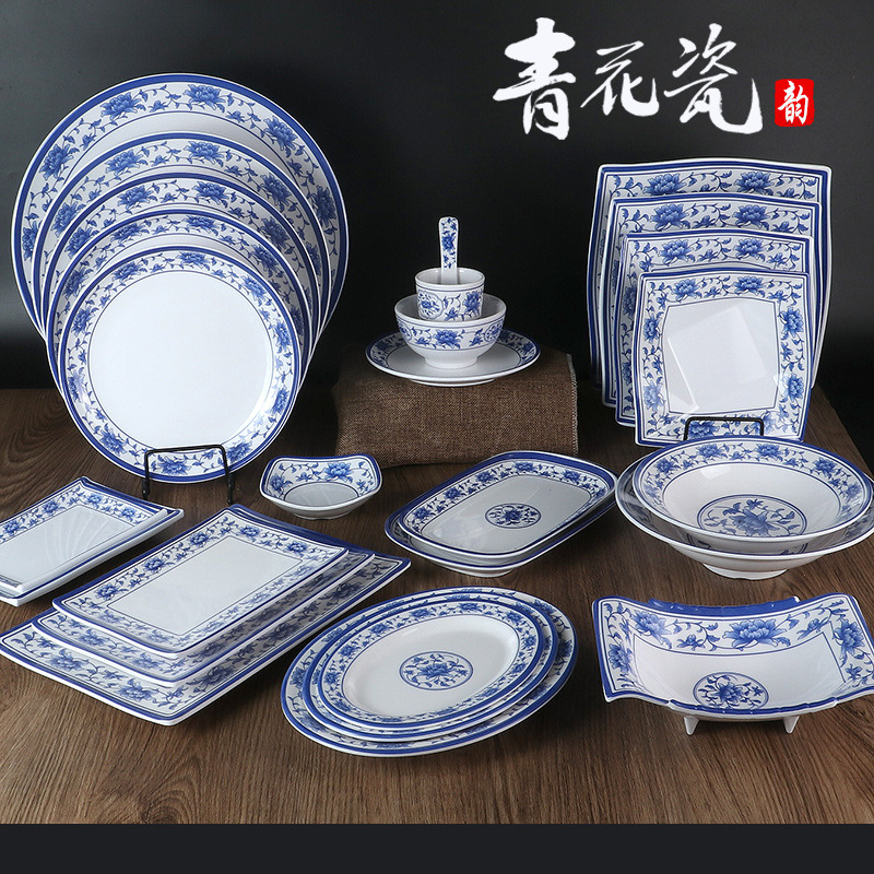 | nameOriginal | S588A5 melamine disc blue and white porcelain plastic plate round tableware imitation porcelain hotel restaurant restaurant cooking dish  |