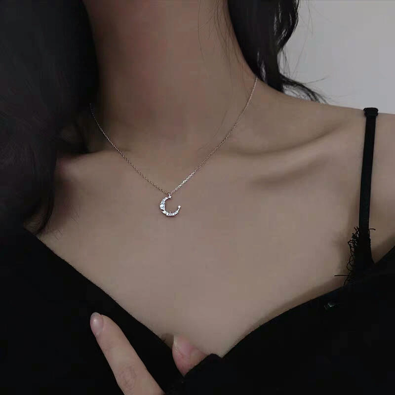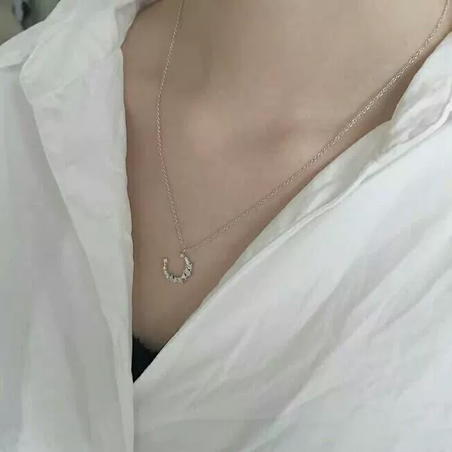 | nameOriginal | s925 all-over sterling silver niche moon necklace female trendy internet celebrity simple temperament cool style versatile Korean style best friend |