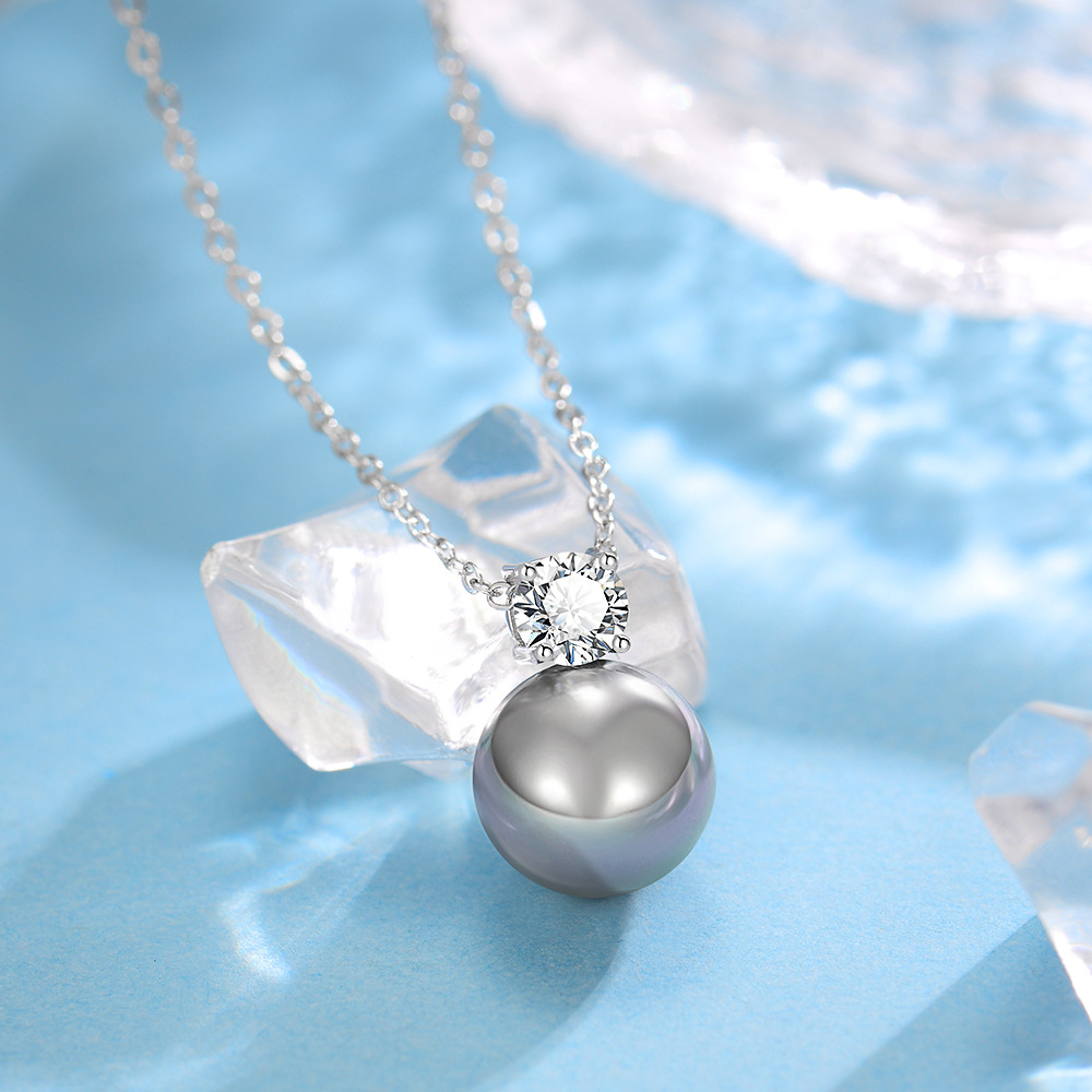 S925 Pure Silver Grey Pearl suit Simple All-match Earrings French Cold Style Elegant High-grade Clavicle Chain