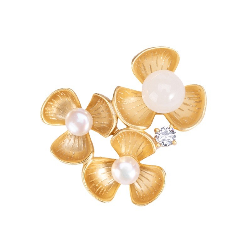 | nameOriginal | S925 silver beads flower pearl brooch inlaid Hetian white jade 3D gold brooch ancient style jewelry female ancient style |