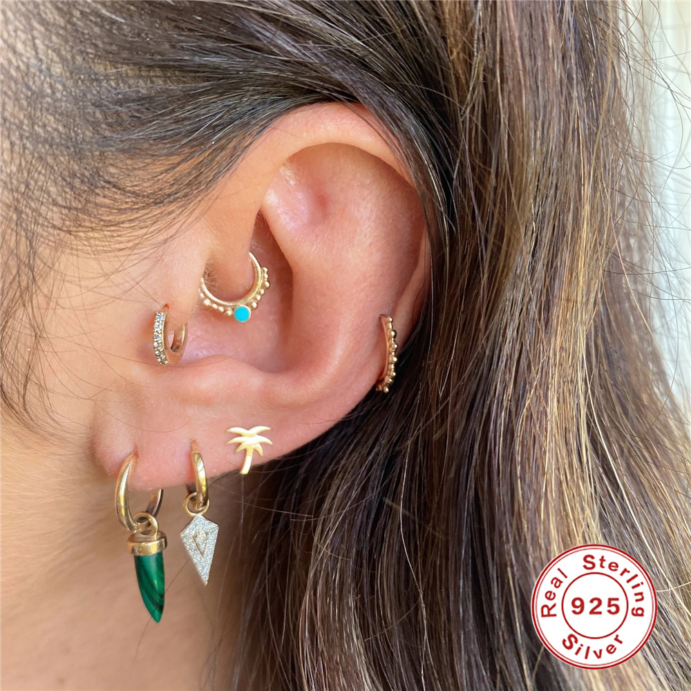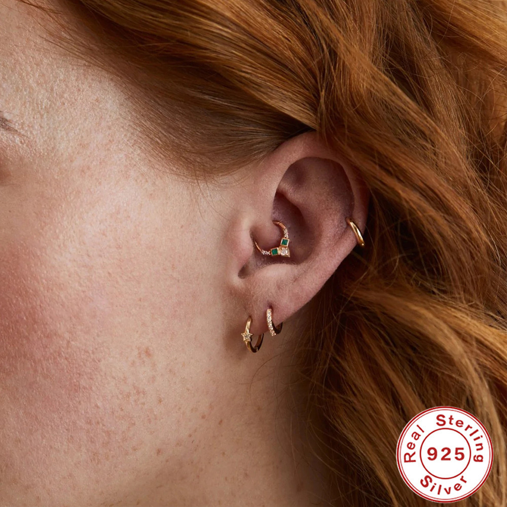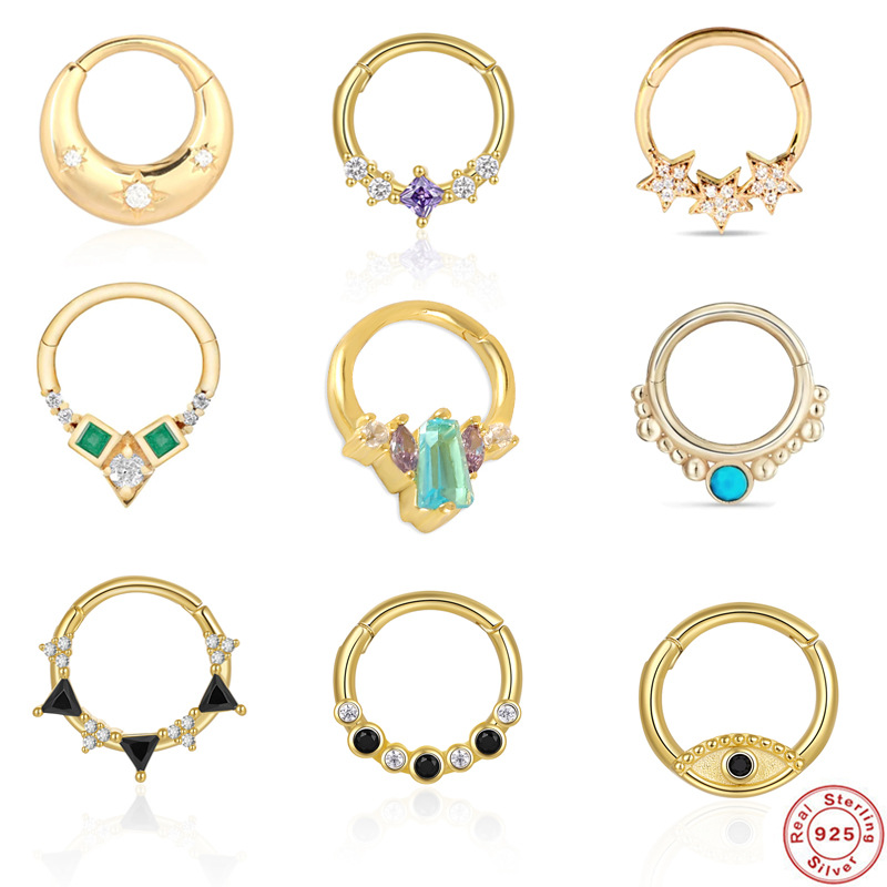 S925 silver body piercing cartilage jewelry color nose ring earrings dual-use two-in-one geometric star ear bone ring