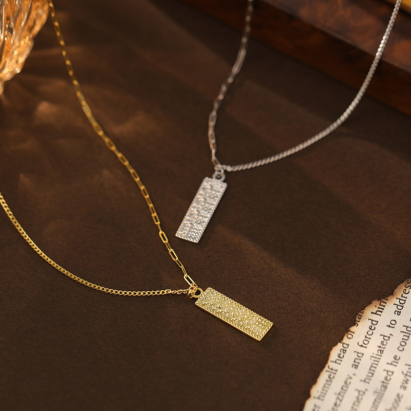 S925 Silver Crushed Ice Square Brand Necklace Women's Niche High-level Clavicle Chain Necklace Princess Please Get Rich Light Luxury Gift