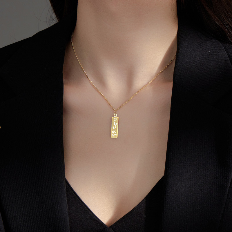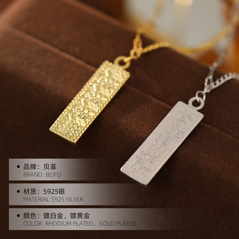 S925 Silver Crushed Ice Square Brand Necklace Women’s Niche High-level Clavicle Chain Necklace Princess Please Get Rich Light Luxury Gift
