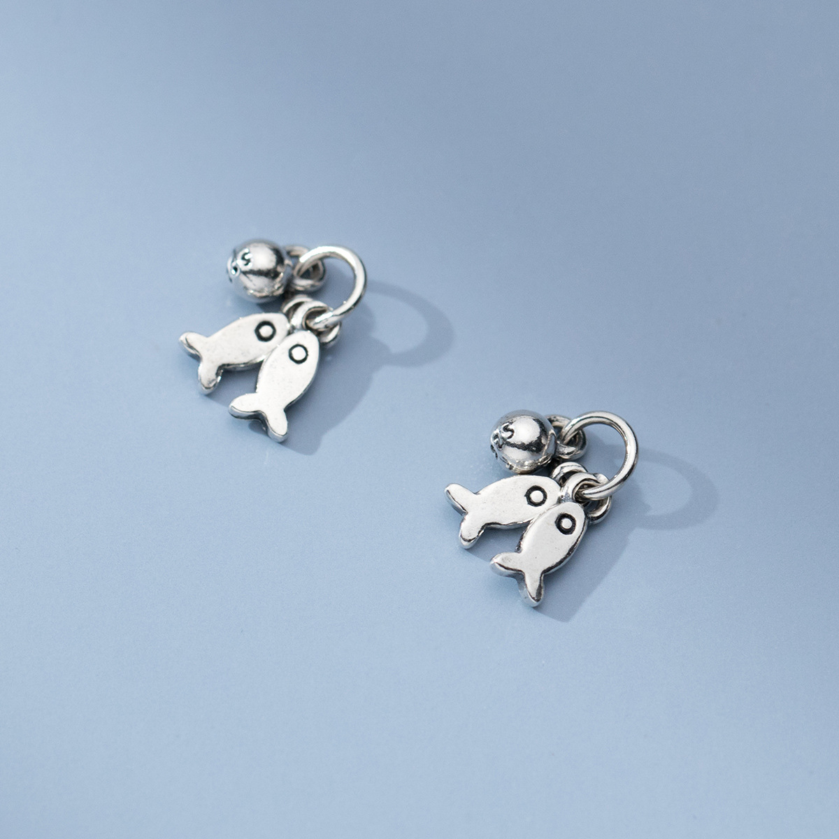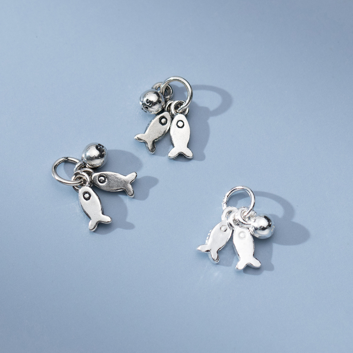 | nameOriginal | S925 silver distressed hanging ball small fish retro style pendant diy bracelet accessories handmade braided rope material pendant S1467 |
