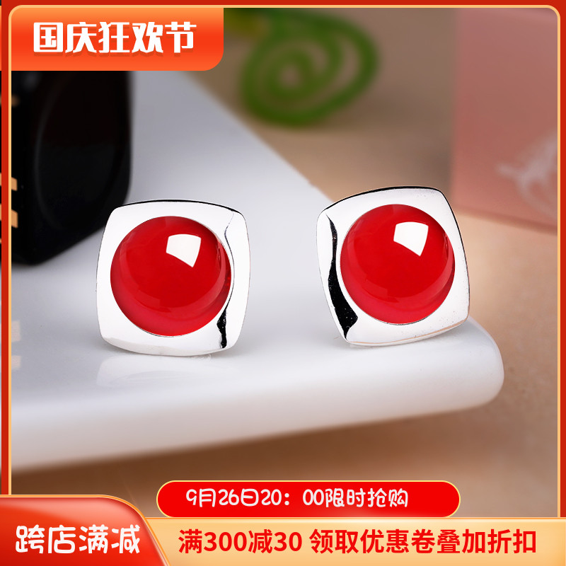 | nameOriginal | S925 silver earrings empty support Japanese and Korean diy inlaid jade jade beeswax turquoise round earrings earrings support for women |