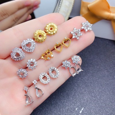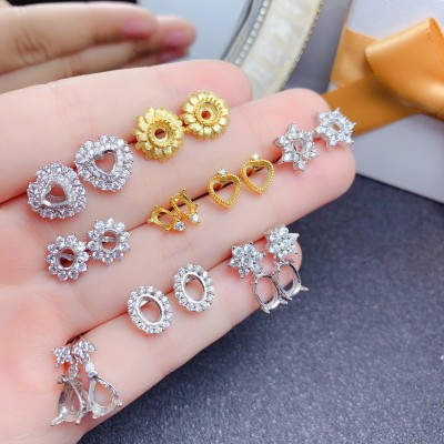 s925 Silver Earrings Inlaid with Various Gems Plated with 18K White Gold Rose Gold Gold