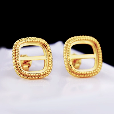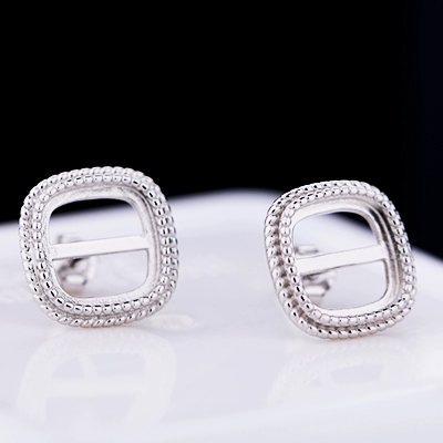 S925 silver earrings with empty brackets square earrings silver brackets inlaid with turquoise amber jade Korean style simple empty brackets 9*9