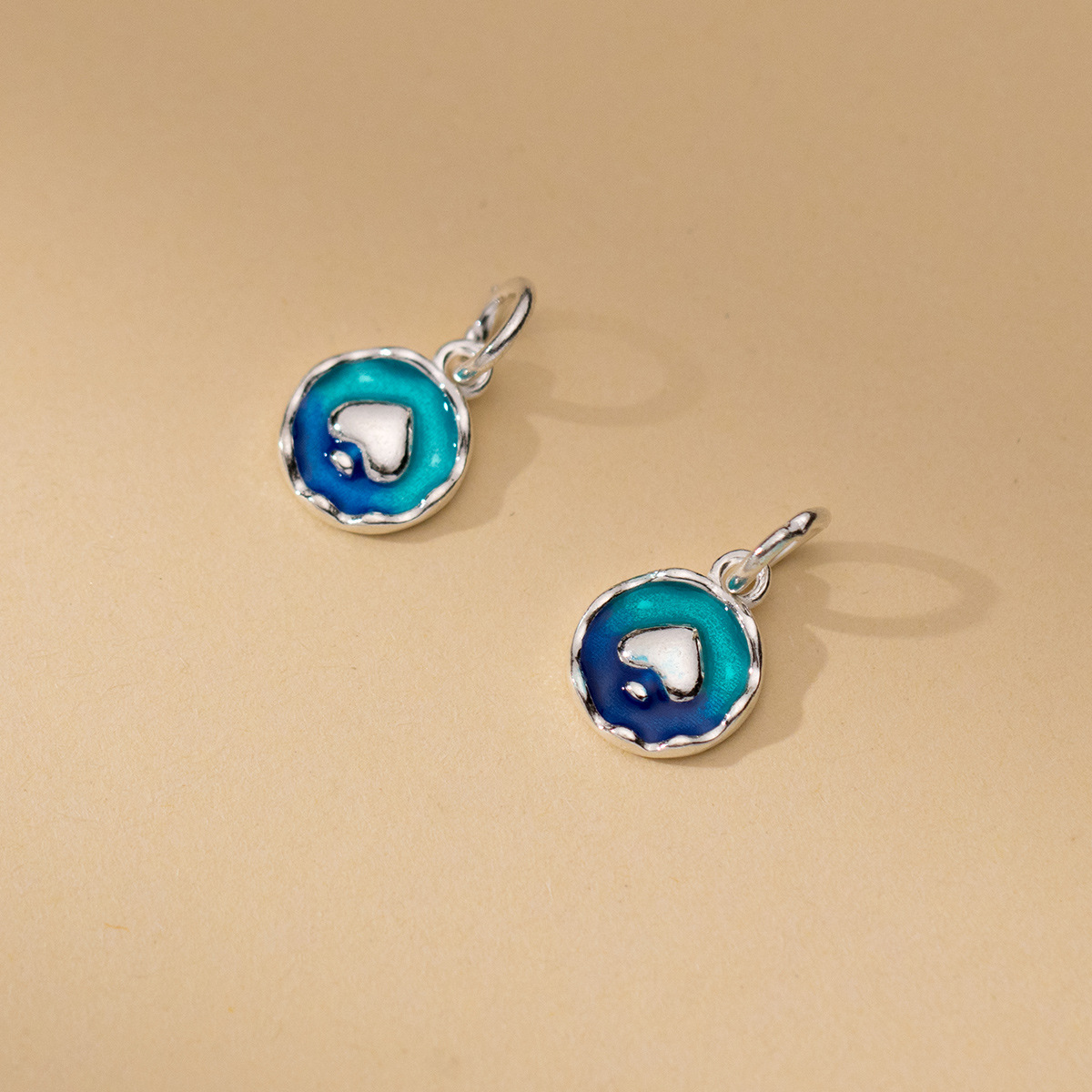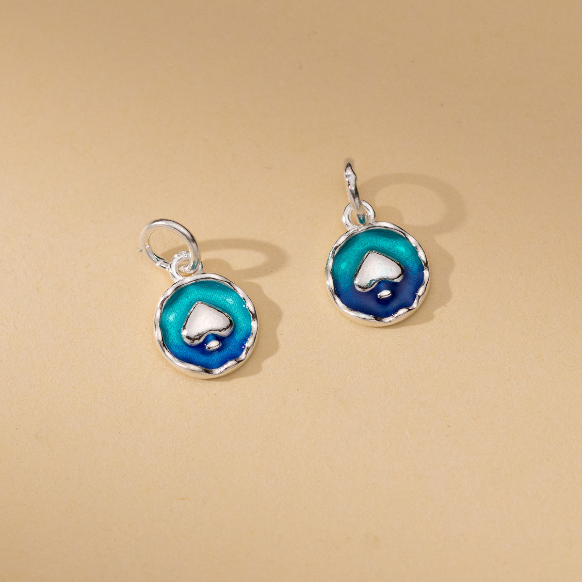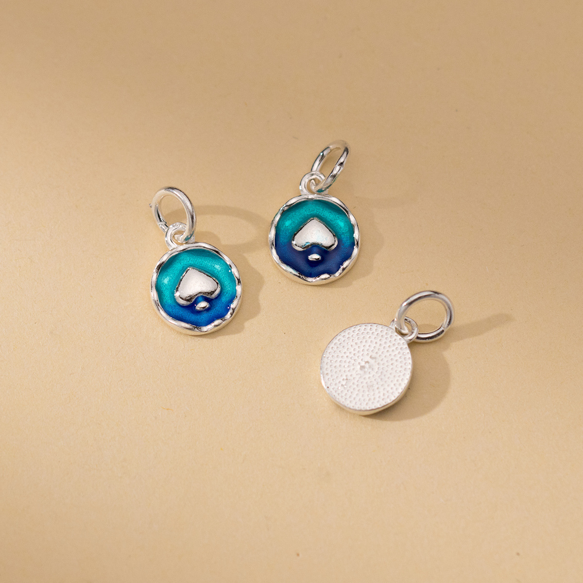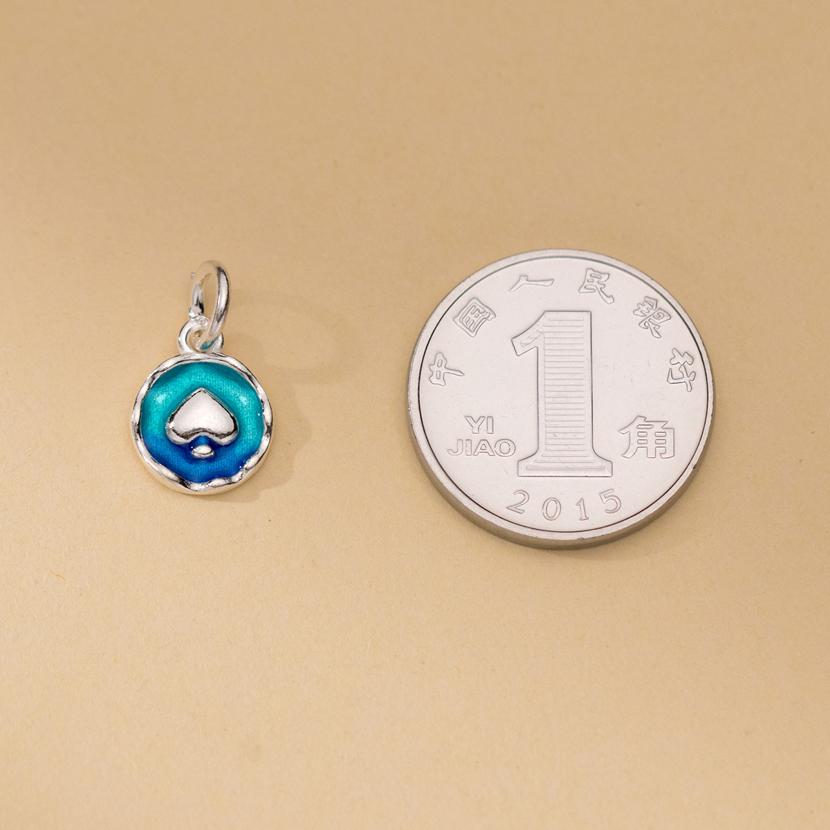 S925 silver epoxy love heart-shaped round pendant diy bracelet peach heart accessories handmade braided rope material pendant Q0783