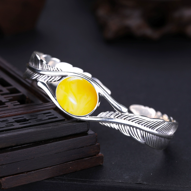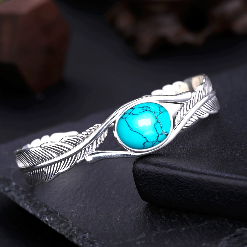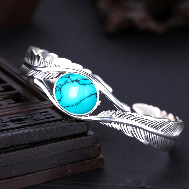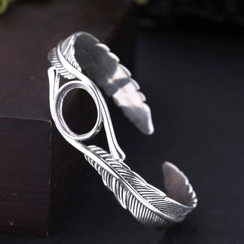 | nameOriginal | S925 silver feather bracelet empty holder retro inlaid turquoise beeswax southern red bracelet holder 13*16 silver holder 12*17 |
