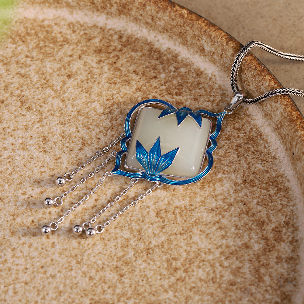 s925 Silver Inlaid Hetian Jade Bamboo Leaf Pendant Fashion Retro Women's Pendant Source Factory Goods