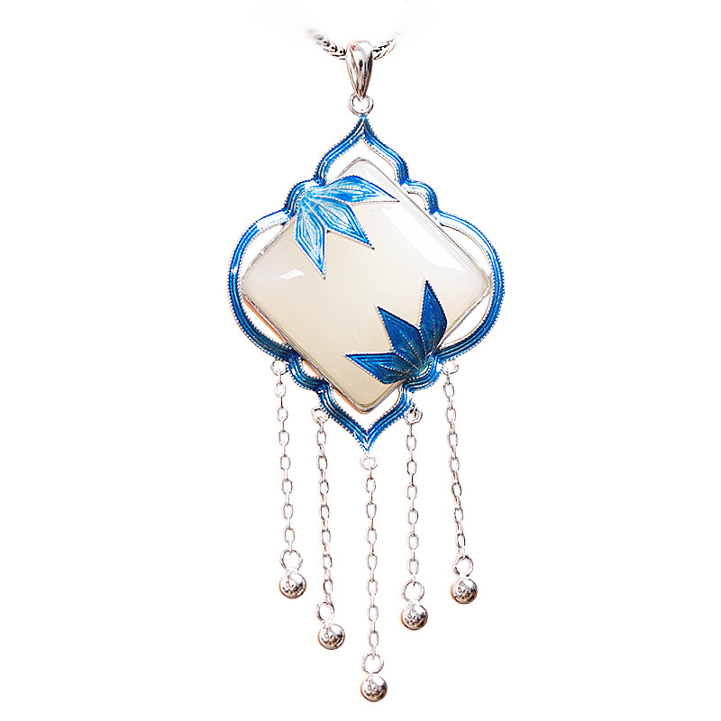 s925 Silver Inlaid Hetian Jade Bamboo Leaf Pendant Fashion Retro Women’s Pendant Source Factory Goods