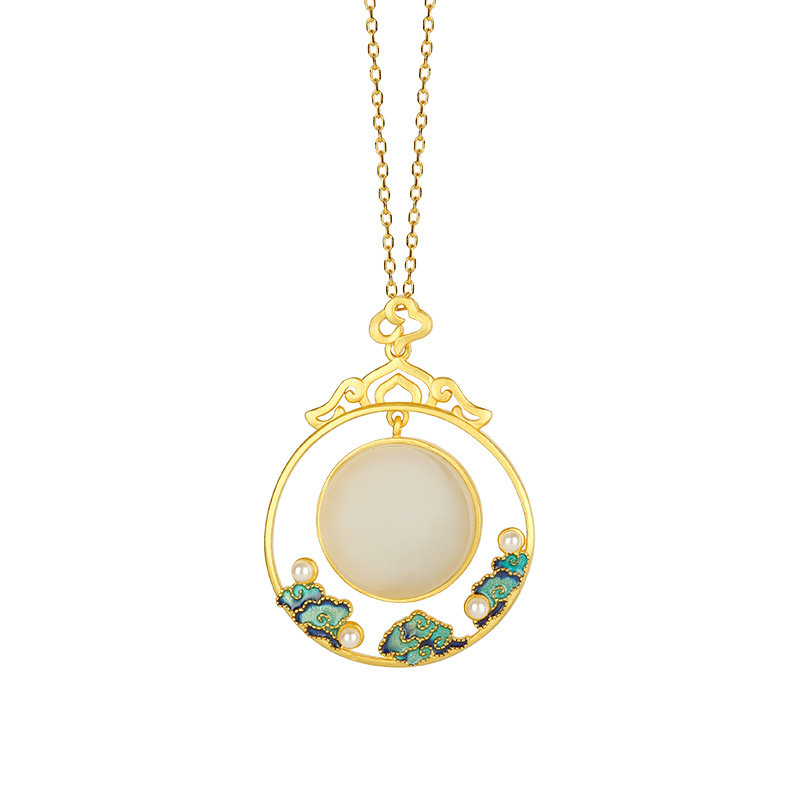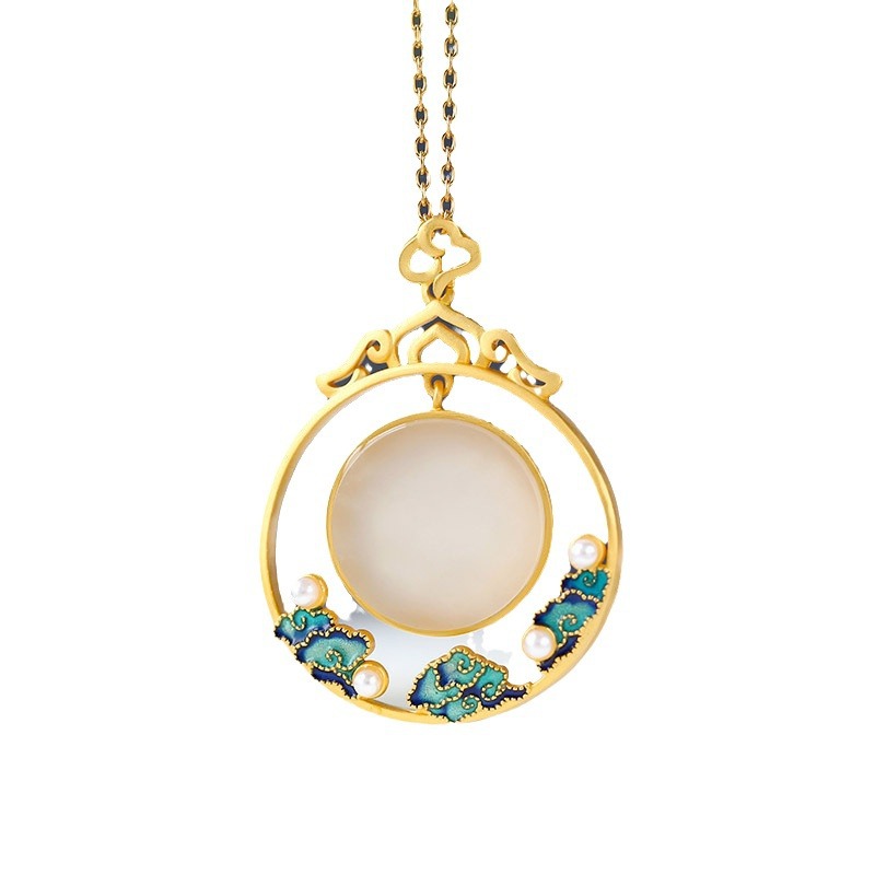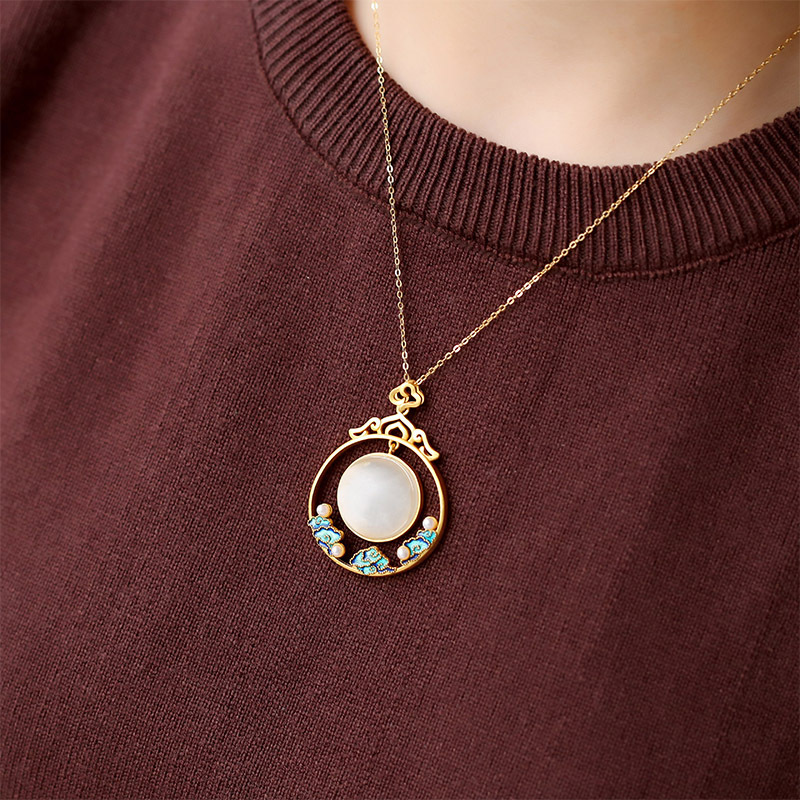 | nameOriginal | S925 silver inlaid Hetian jade burning blue craft freshwater beads Embellished retro elegant temperament pendant necklace |