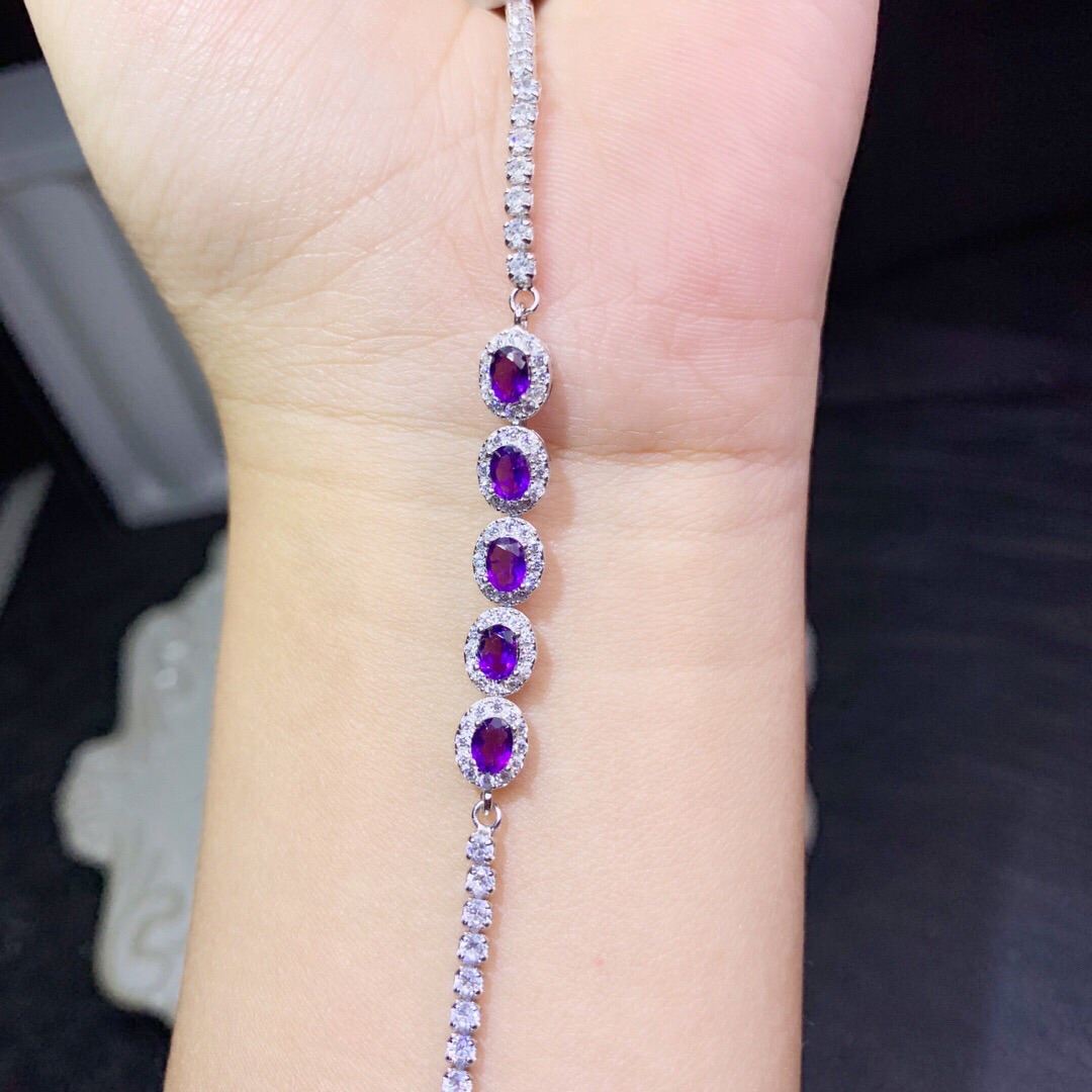 | nameOriginal | S925 silver inlaid natural amethyst bracelet main stone size 3*4mm 925 silver plated platinum amethyst supports identification |