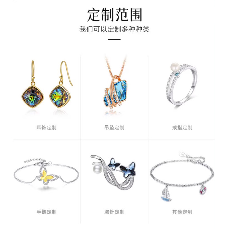 s925 silver jewelry custom earrings ring sample printing custom name necklace female jewelry set