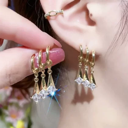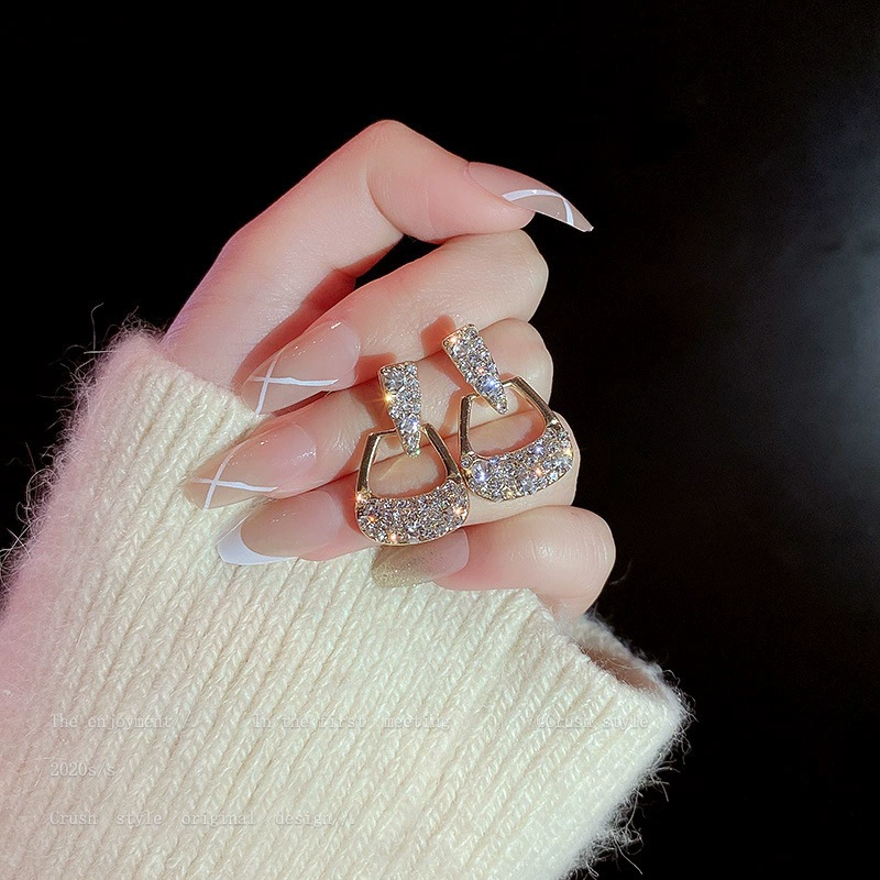 S925 silver needle earrings Korea Dongdaemun diamond earrings retro trendy earrings high-end temperament earrings for women