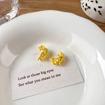 S925 silver needle Korean Hyuna style earrings temperament candy color fresh C-line flower earrings ins style new earrings