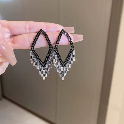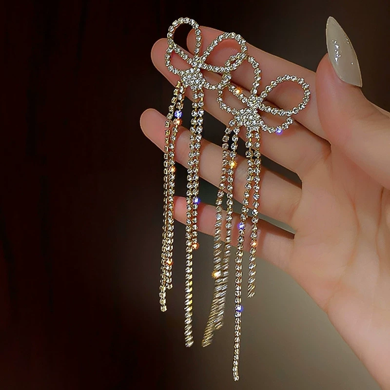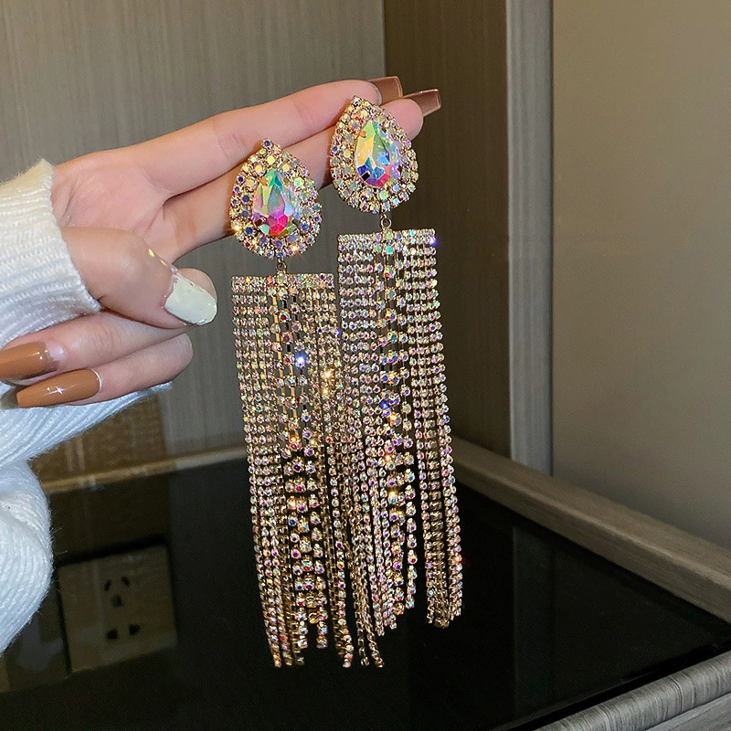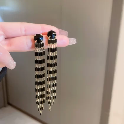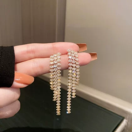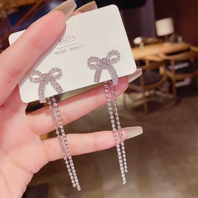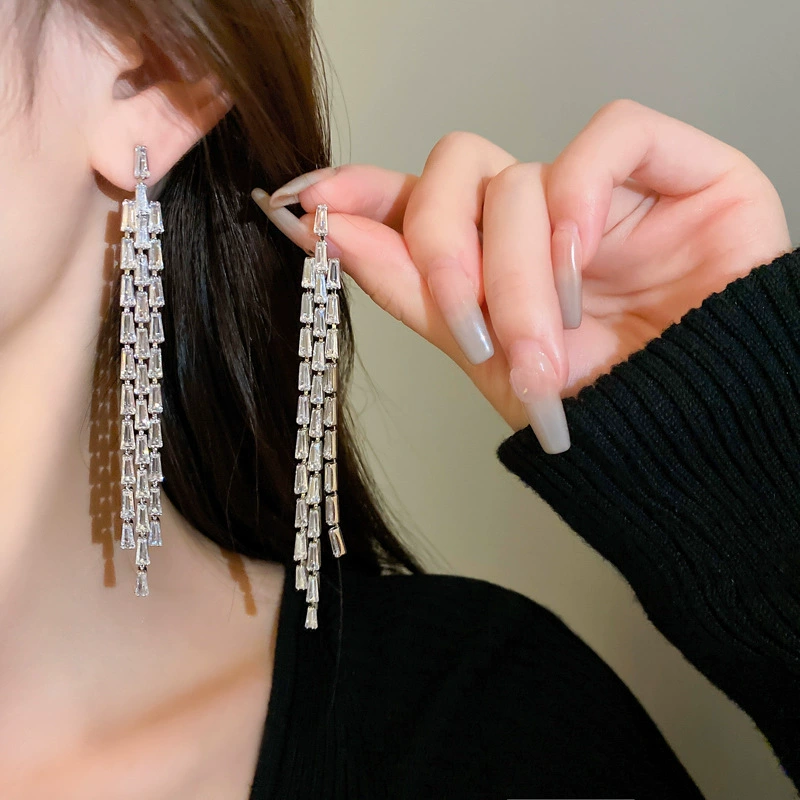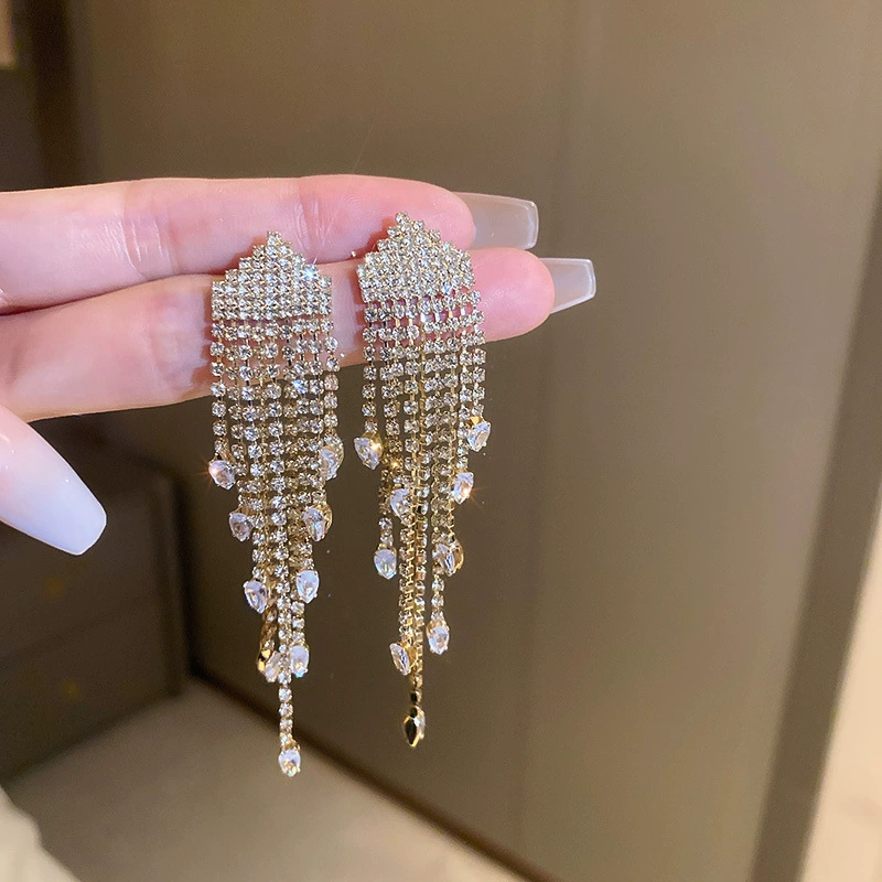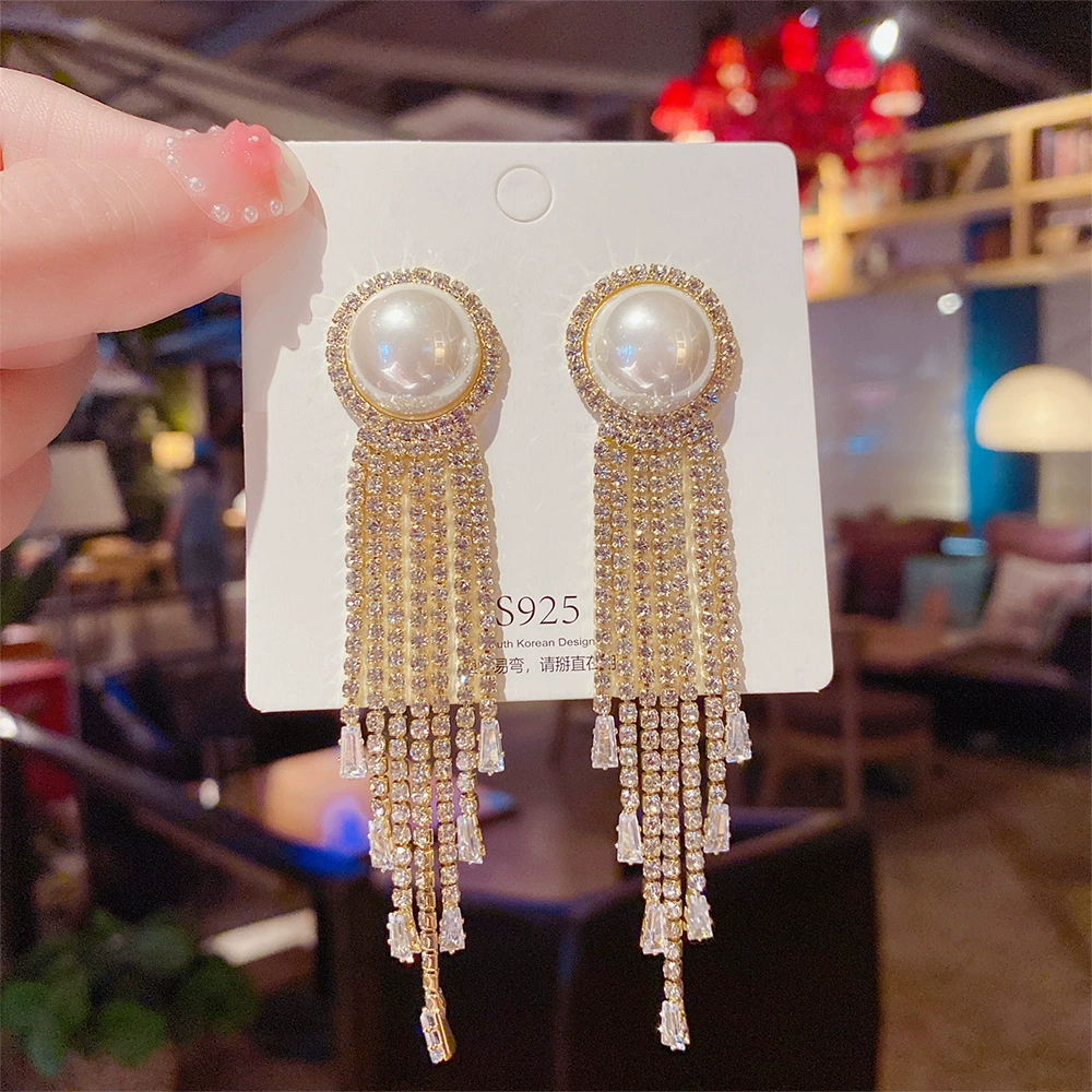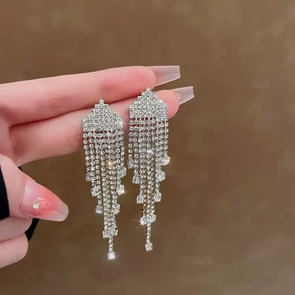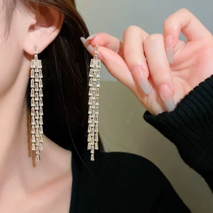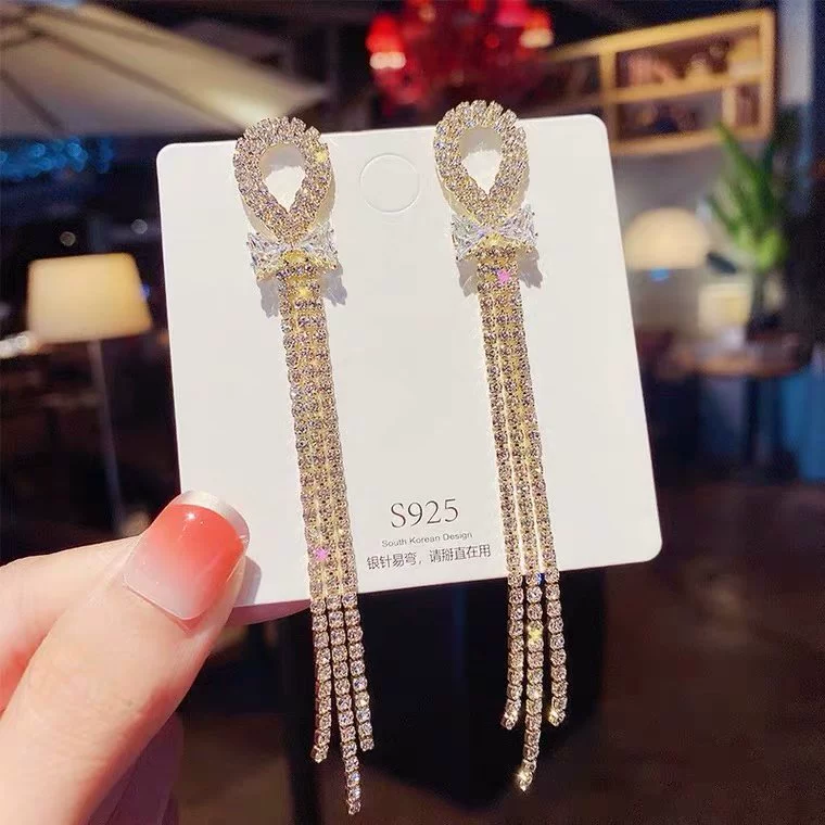 | nameOriginal | s925 silver needle Korean temperament long rhinestone tassel earrings female internet celebrity fashion versatile slim earrings trendy earrings |