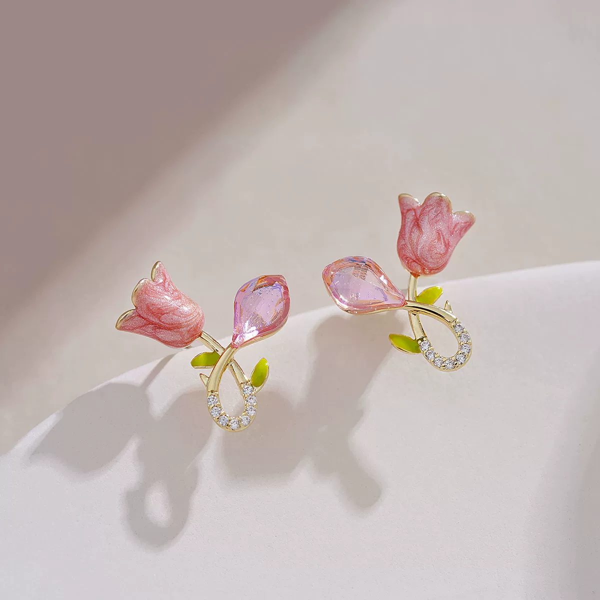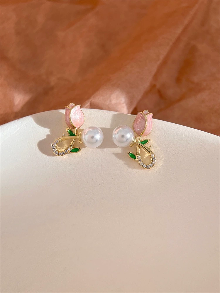 S925 silver needle pink tulip flower pearl earrings for women 2023 new niche design earrings