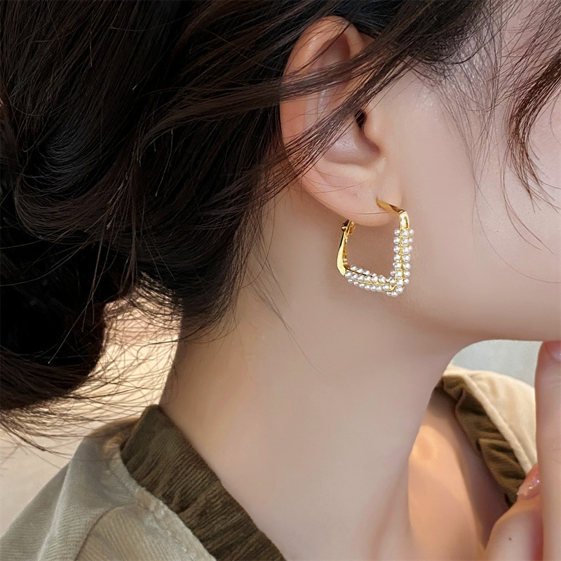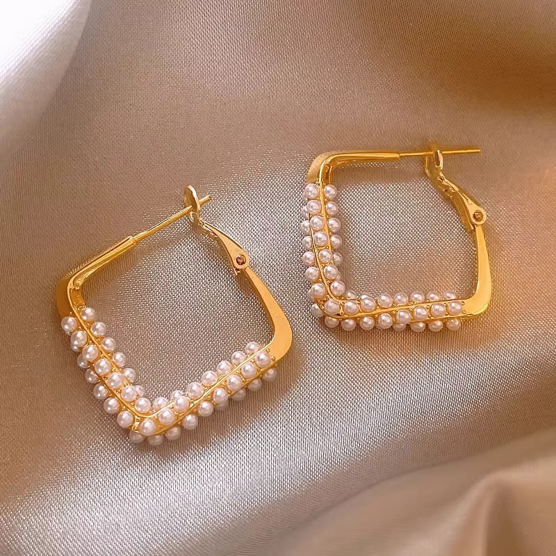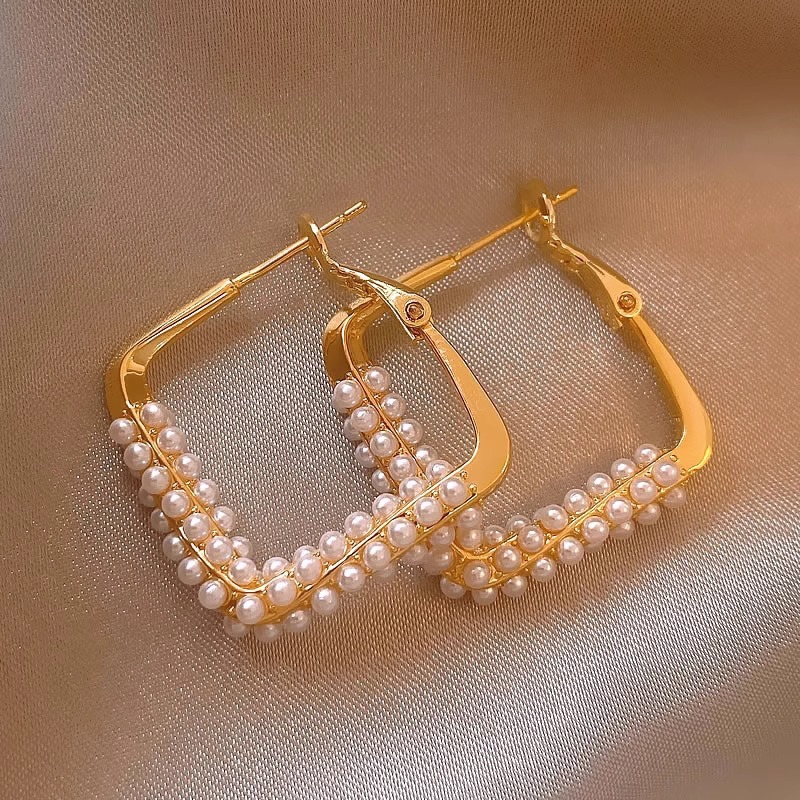 | nameOriginal | S925 Silver Needle Square Micro Pearl Earrings Women's Unique French Ear Ring Niche Design High Elegant Earrings |