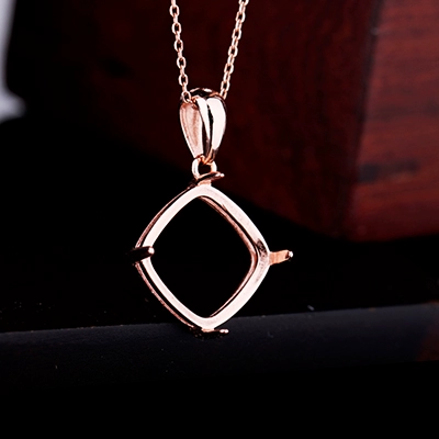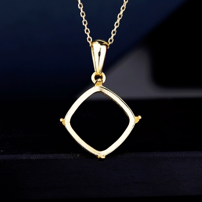 S925 silver pendant empty support square gold plated necklace empty support inlaid with beeswax turquoise women’s silver support 12*12