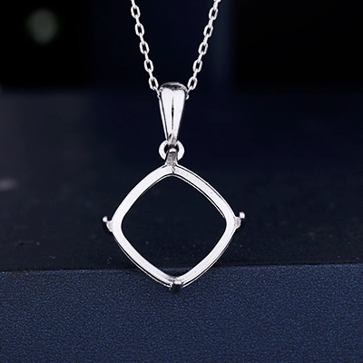S925 silver pendant empty support square gold plated necklace empty support inlaid with beeswax turquoise women's silver support 12*12