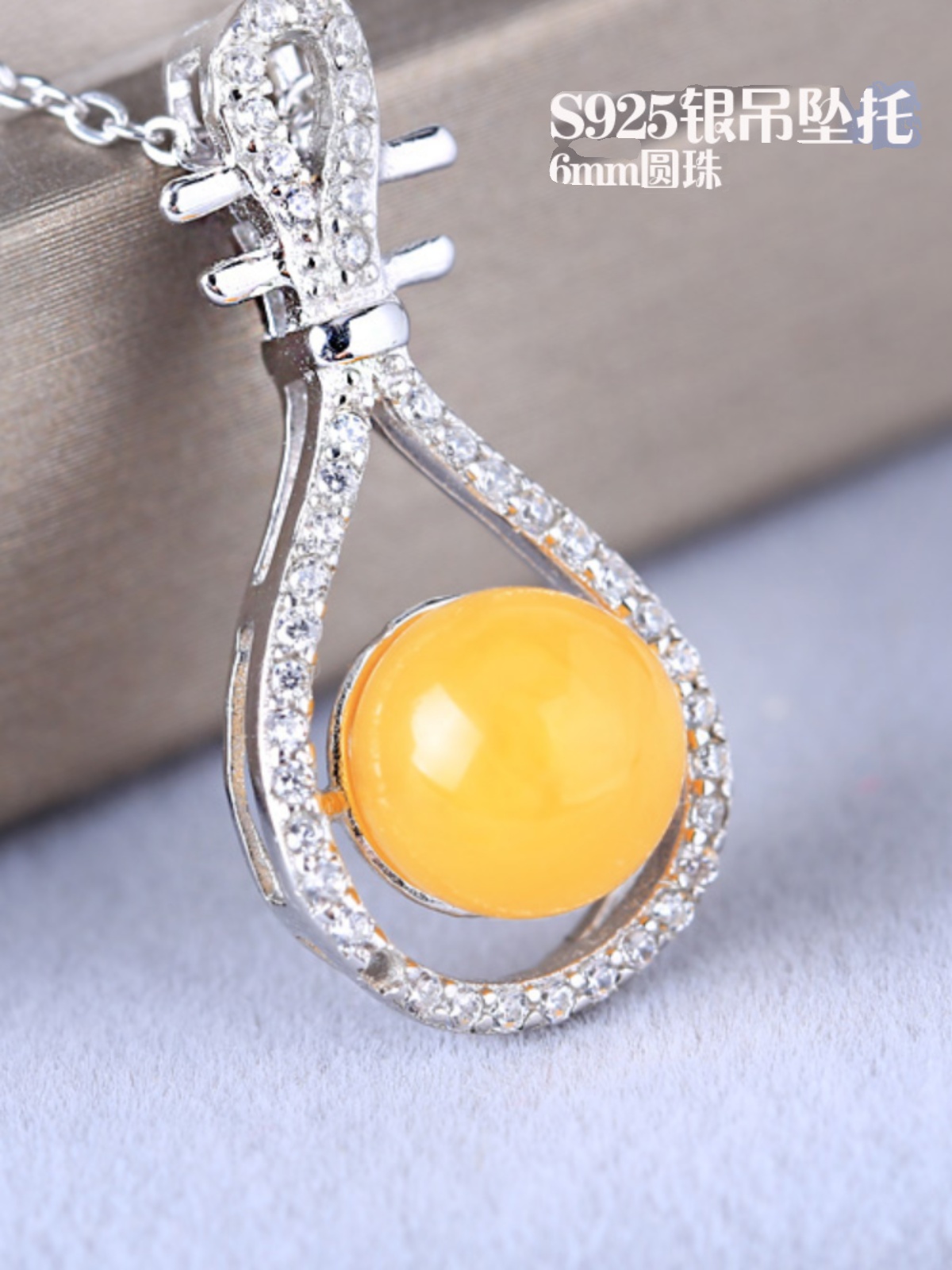 | nameOriginal | S925 silver pendant holder sterling silver empty holder inlaid with amber beeswax pendant holder platinum plated pendant holder 6mm to 9mm round |