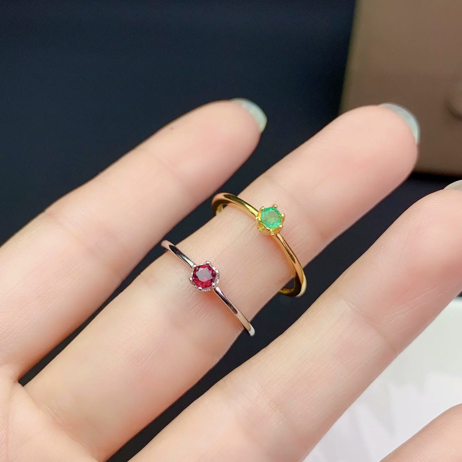| nameOriginal | S925 silver plated 18K gold ring empty support Japanese and Korean fashion and fresh six-claw style inlaid with round 3*3mm colorful treasures |