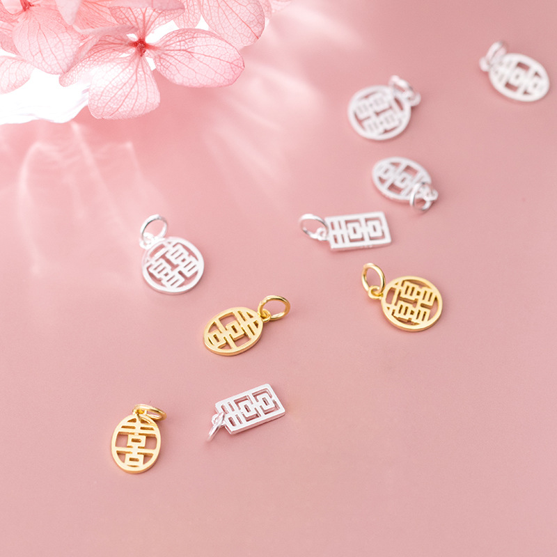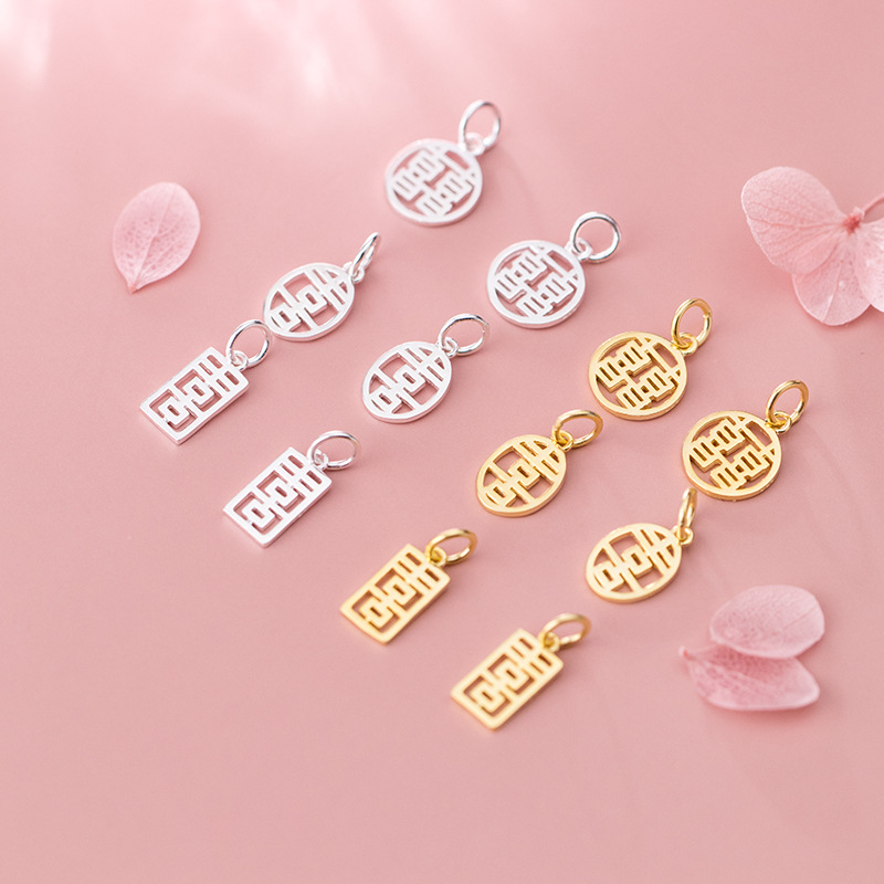 | nameOriginal | S925 silver plated gold hollowed out Xi character pendant bracelet pendant handmade DIY jewelry accessories wholesale Q0290 |