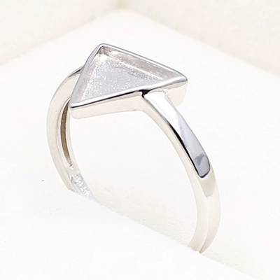 S925 Silver Ring empty bracket inlaid with green beeswax Silver Triangle Triangle square orthopedic eccentric 8*8