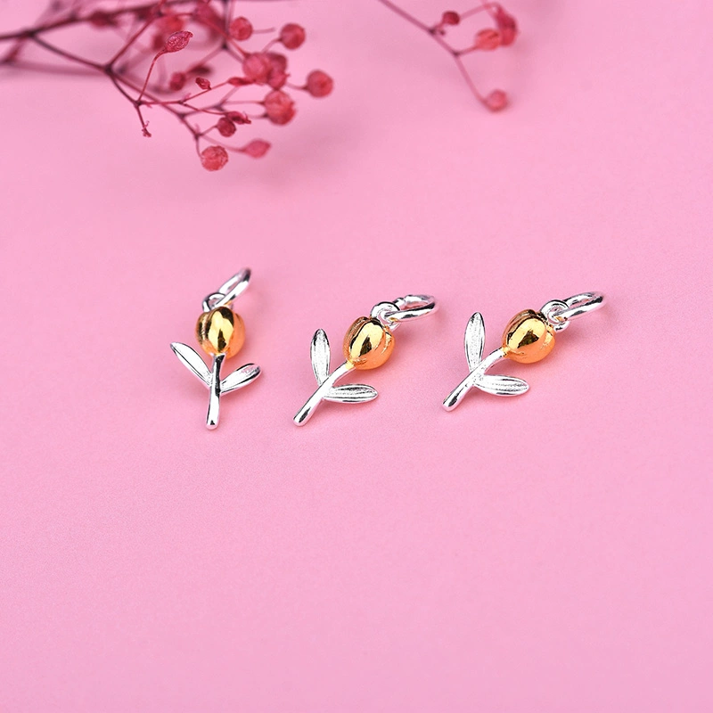 S925 sterling silver accessories, silver jewelry, temperament tulip pendant, handmade DIY jewelry material, bracelet accessories