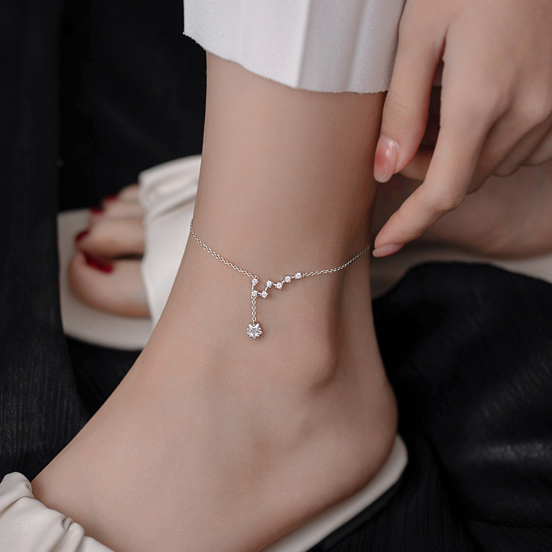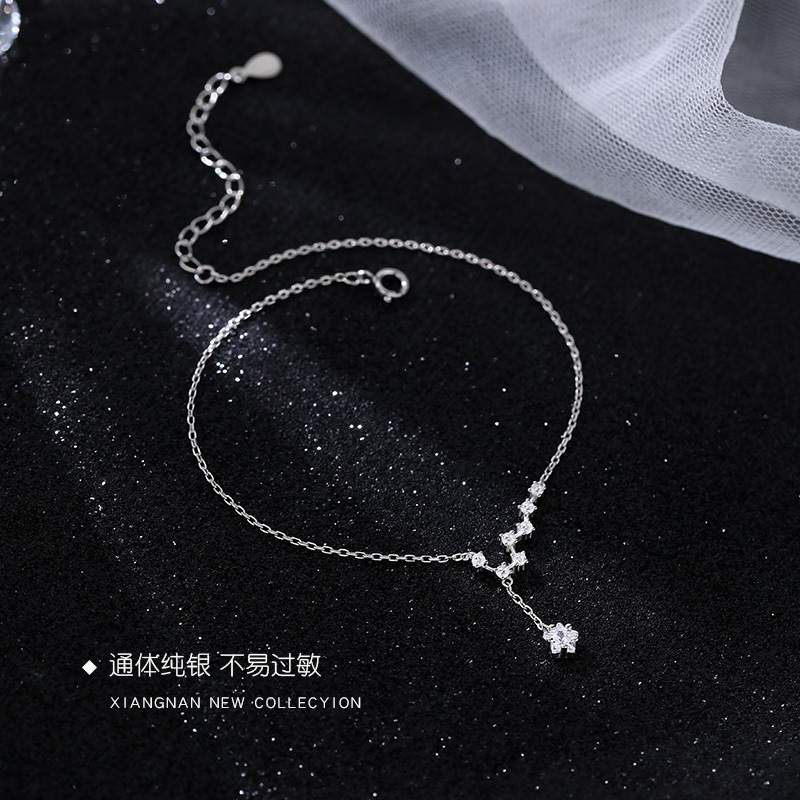 S925 Sterling Silver Big Dipper Anklet Women's Elegant Japanese and Korean Style Simple Sweet All-Match Distinctive Diamond Star Anklet