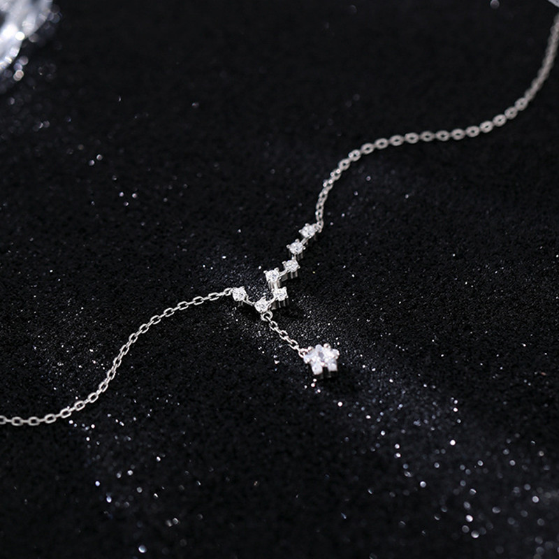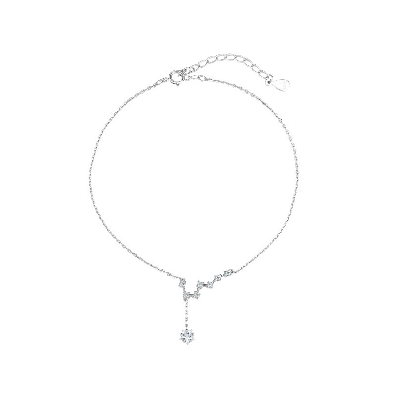 S925 Sterling Silver Big Dipper Anklet Women’s Elegant Japanese and Korean Style Simple Sweet All-Match Distinctive Diamond Star Anklet