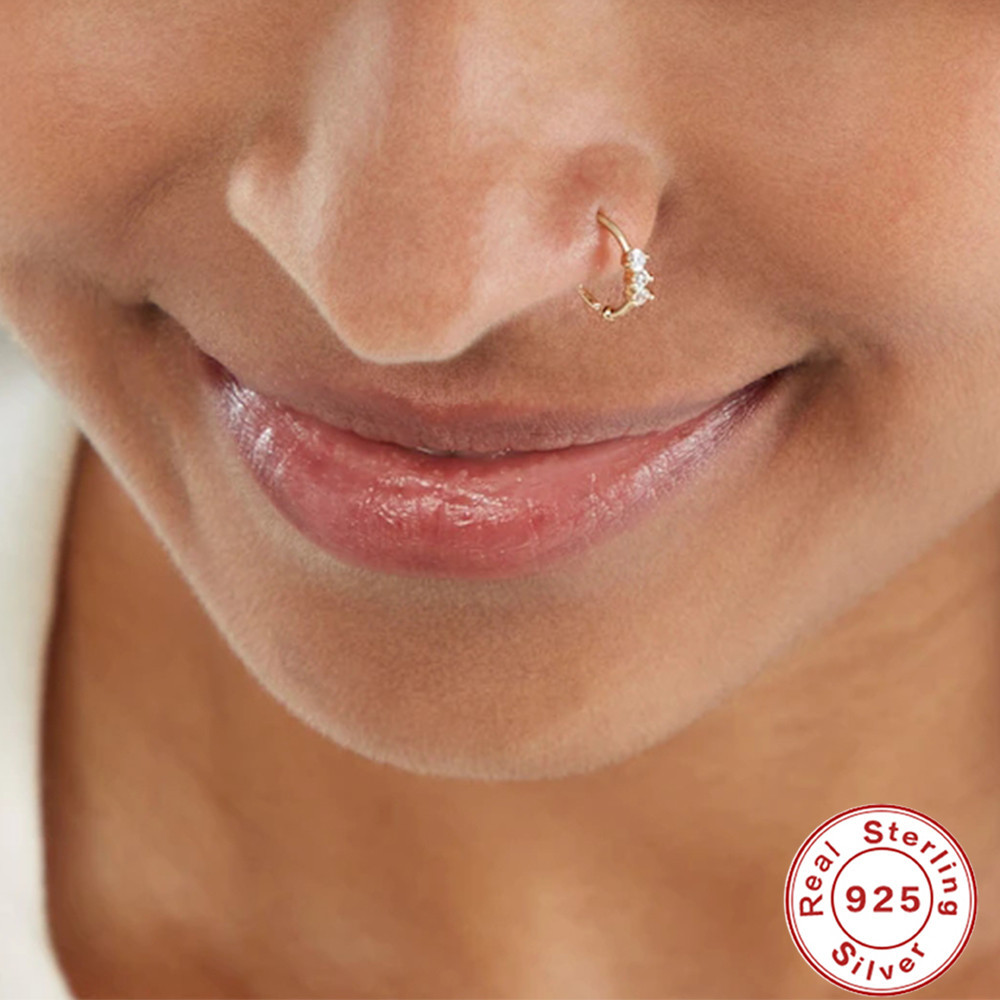 S925 sterling silver diamond body piercing jewelry nose ring nose nail ear jewelry European and American fashion personality ear clip auricle