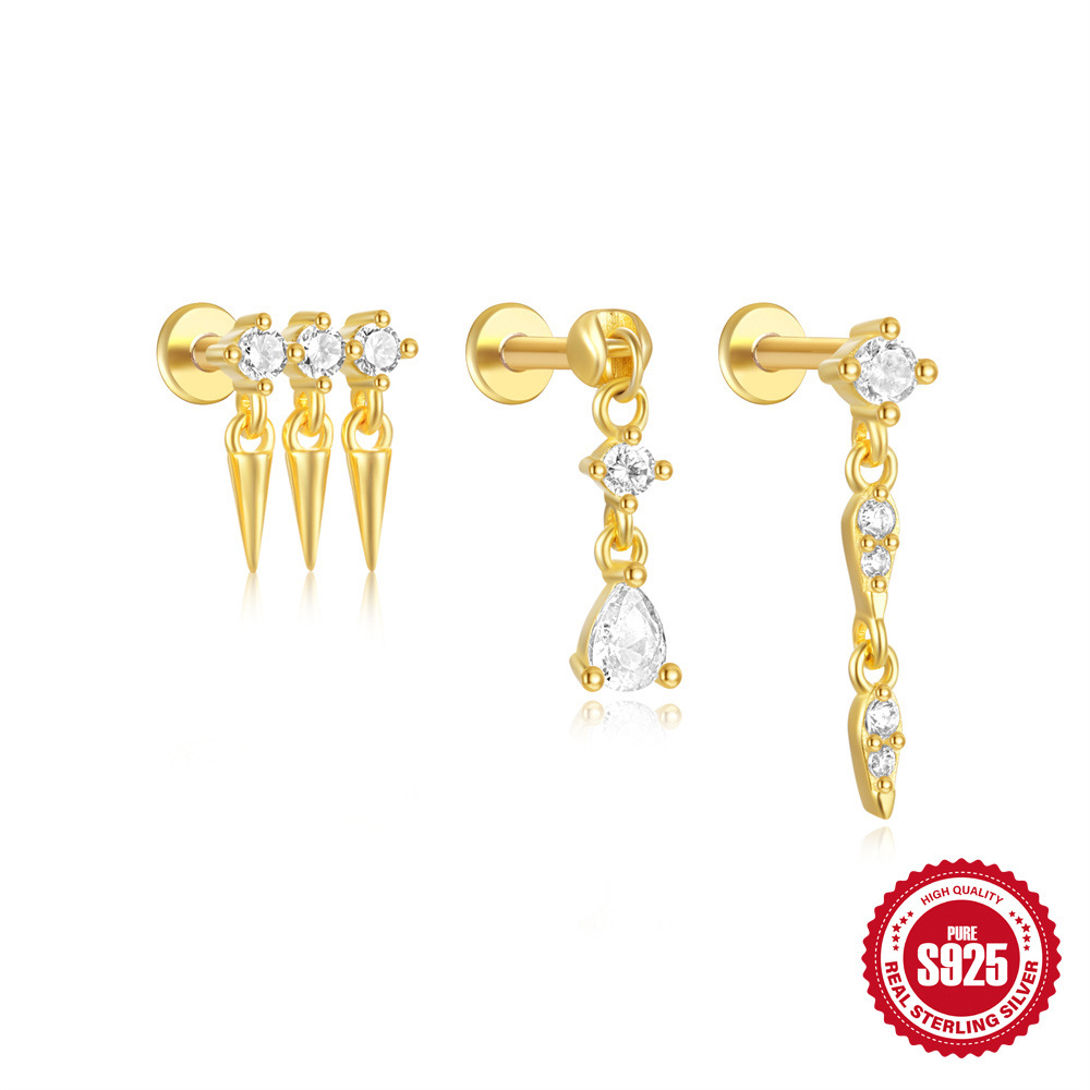 | nameOriginal | S925 Sterling Silver Diamond Flat Bottom Piercing Thread Ear Nail European and American Diamond Cone Crown Pendant Water Drop Ear Jewelry |