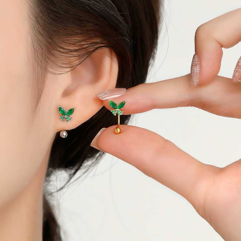 | nameOriginal | S925 Sterling Silver Ear Clip Green Zircon Butterfly Ear Hook Women's Screw Screw Earrings Niche Design Light Luxury Earrings |