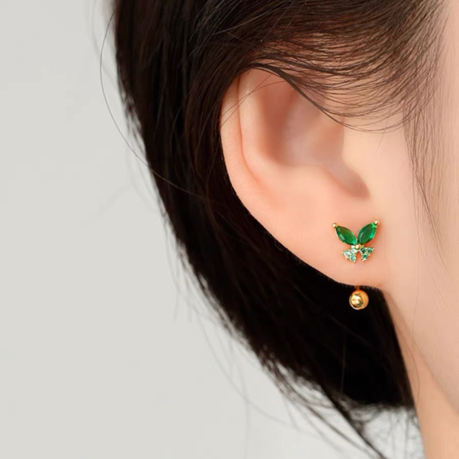 | nameOriginal | S925 Sterling Silver Ear Clip Green Zircon Butterfly Ear Hook Women's Screw Screw Earrings Niche Design Light Luxury Earrings |