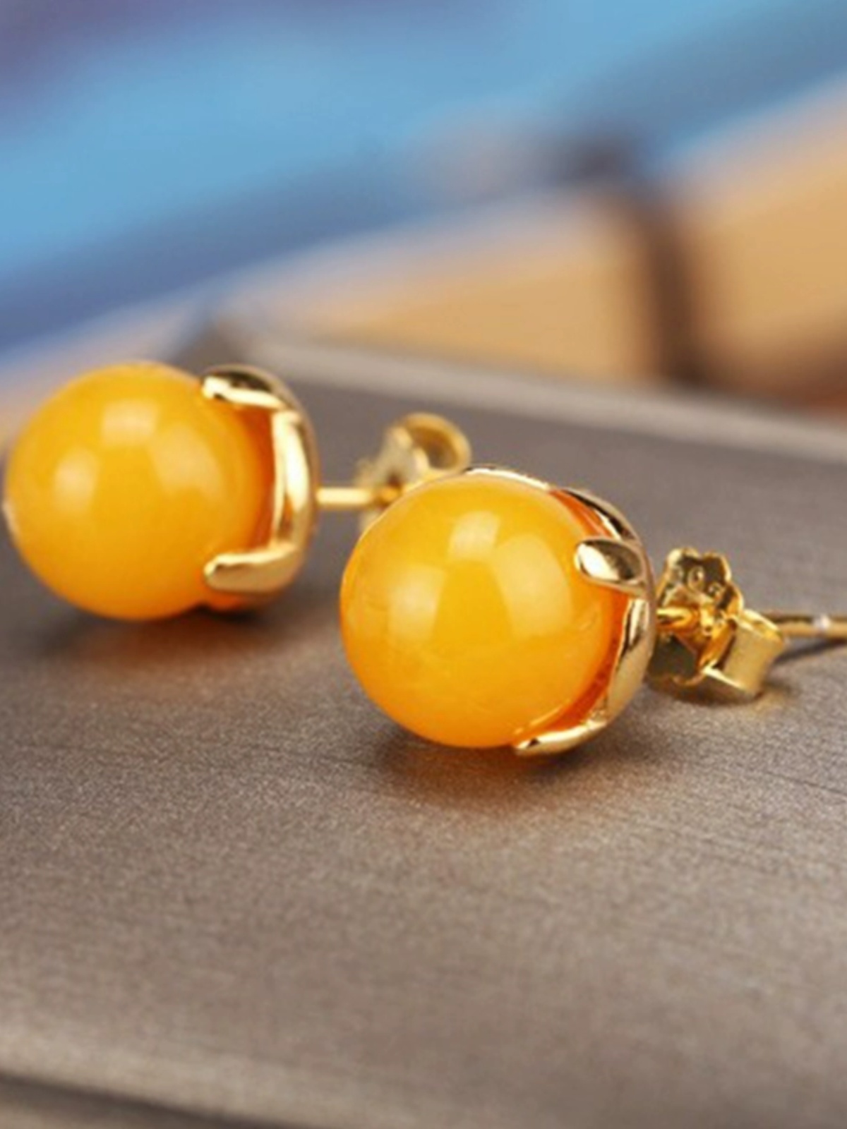 | nameOriginal | S925 sterling silver earrings empty earrings gold plated beeswax southern red amber ball beads earrings earrings 8mm |